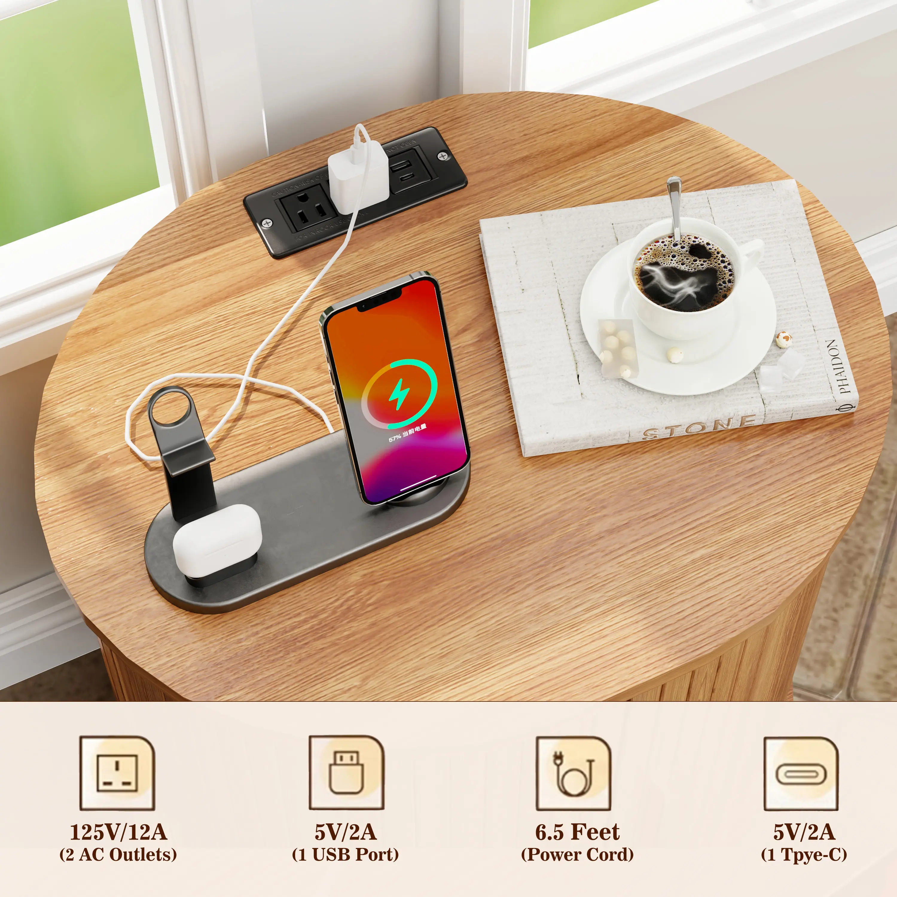 Integrated Power Station: Built-in 2 AC outlets and 2 USB ports. No more crawling under furniture to find a plug.