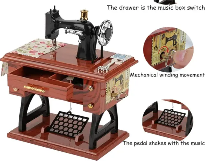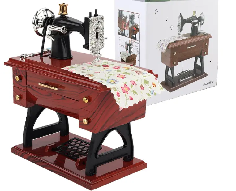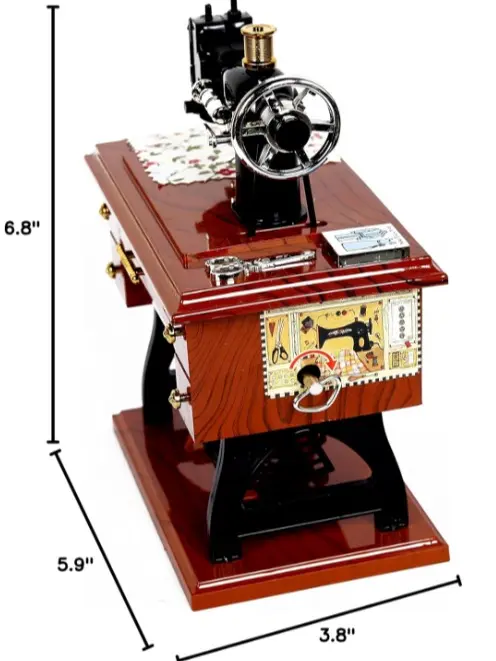 Vintage Mini Sewing Machine Music Box, European Retro Classical Treadle Sewing Machine Table Desk Mechanical Clockwork Music Box for Home Decor Birthday Gift