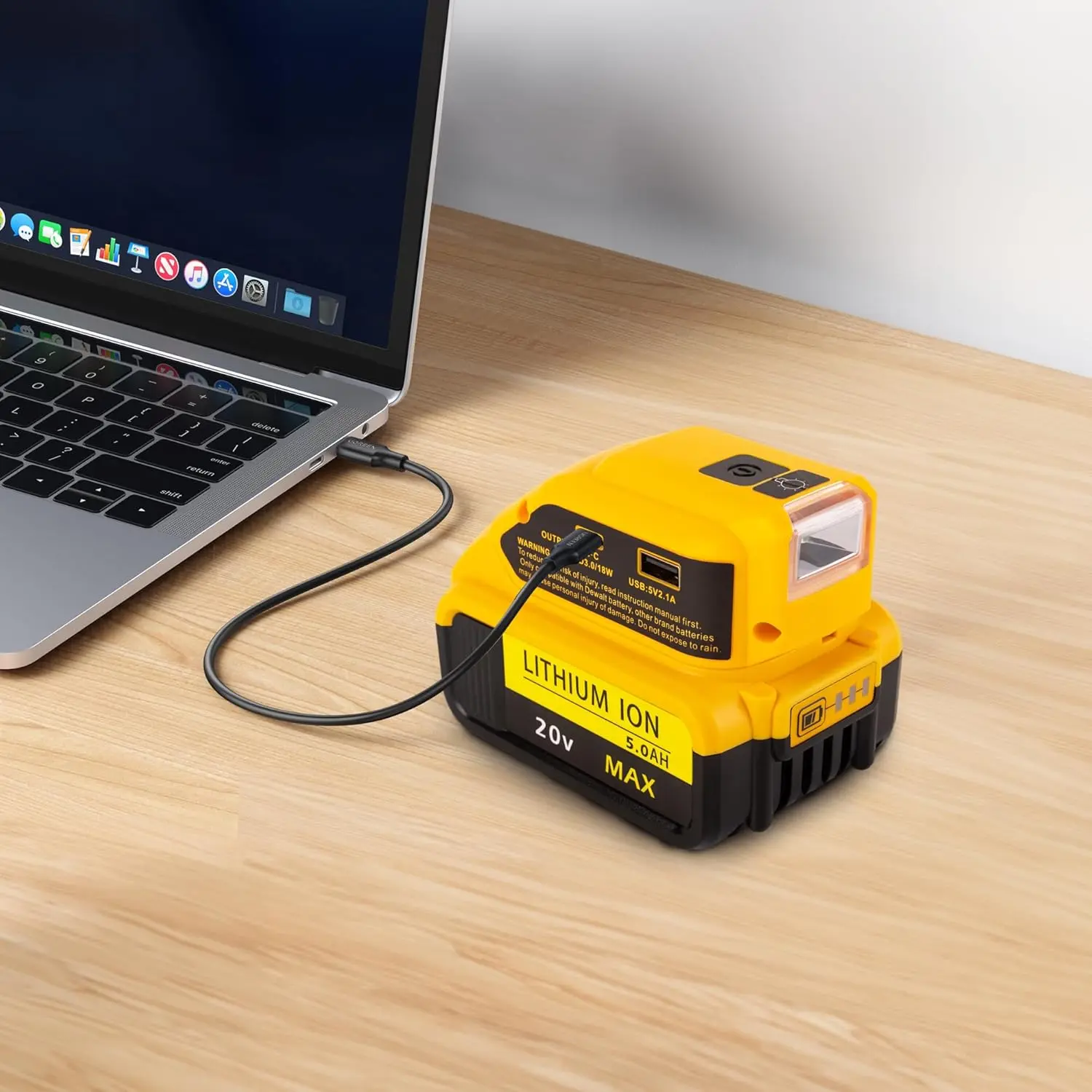·Compatible Model Converter: The USB charger adapter is compatible with DeWalt 14.4V 18V 20V lithium battery. Such as DCB090 DCB180 DCB181 DCB182 DCB201 DCB201-2 DCB204-2 DCB205-2 (Note: This USB charger adapter is compatible only for DeWalt devices. To charge, simply turn on the light first. Once charging starts, you can turn off the light, and it will continue charging as expected)