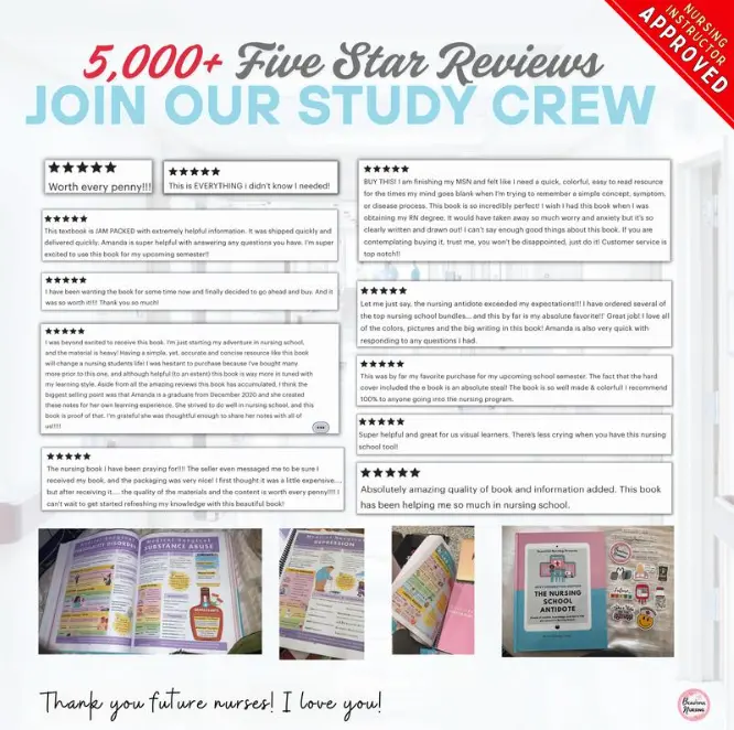 Written in an encouraging and easy-to-understand tone, The Nursing School Antidote feels like having a mentor by your side every step of the way. It’s more than just a study guide—it’s a source of comfort, inspiration, and empowerment when you need it most.