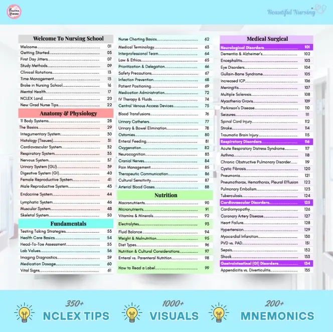 Inside this beautifully organized edition, you’ll discover essential study techniques, time management strategies, and clinical tips that simplify complex concepts and boost your confidence in both classroom and real-world settings. Whether you’re struggling with exams, overwhelmed by clinical rotations, or simply looking for ways to stay motivated, this book provides clear, actionable guidance tailored specifically for nursing students in today’s fast-paced learning environment.