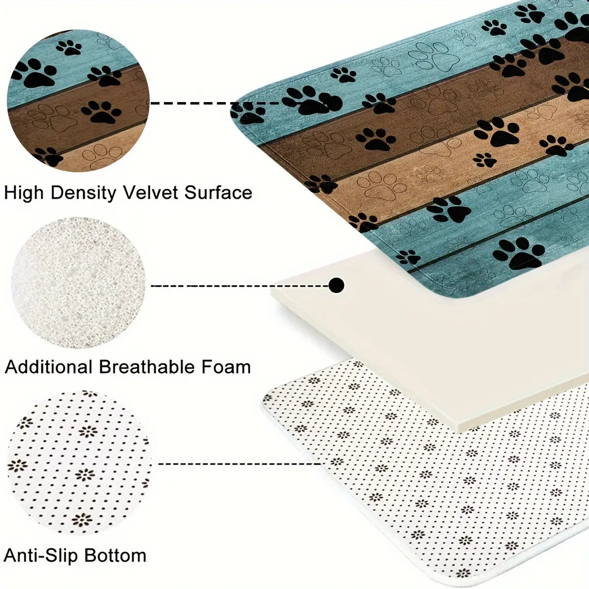 A Set of Three Cartoon Wooden Board Patterned Dog Paw Print Bathroom Toilet Additions, Including a Rectangular Mat, a U-Shaped Foot Pad, And an Oval Toilet Lid Cover. This Combination Set Features Soft And Comfortable Flannel Fabric with Super Absor