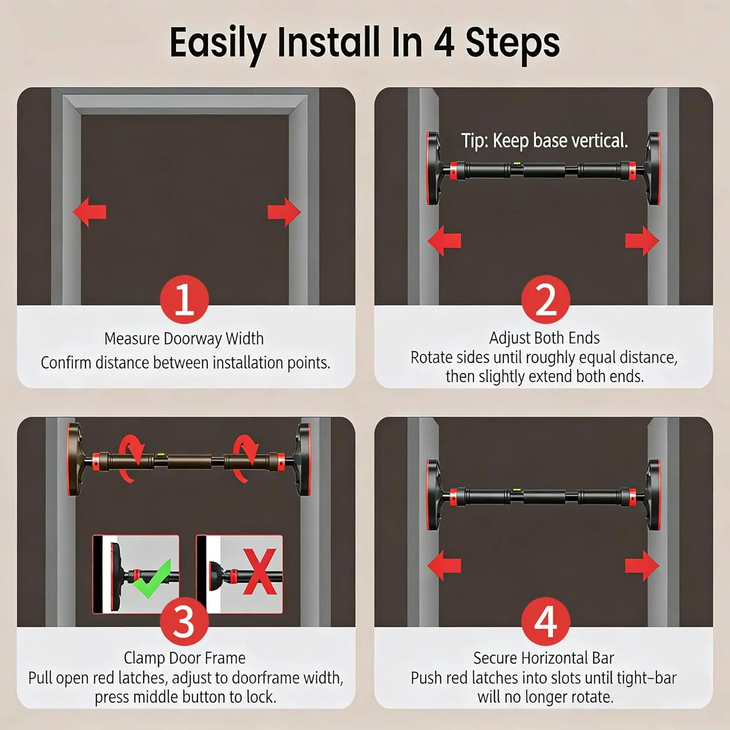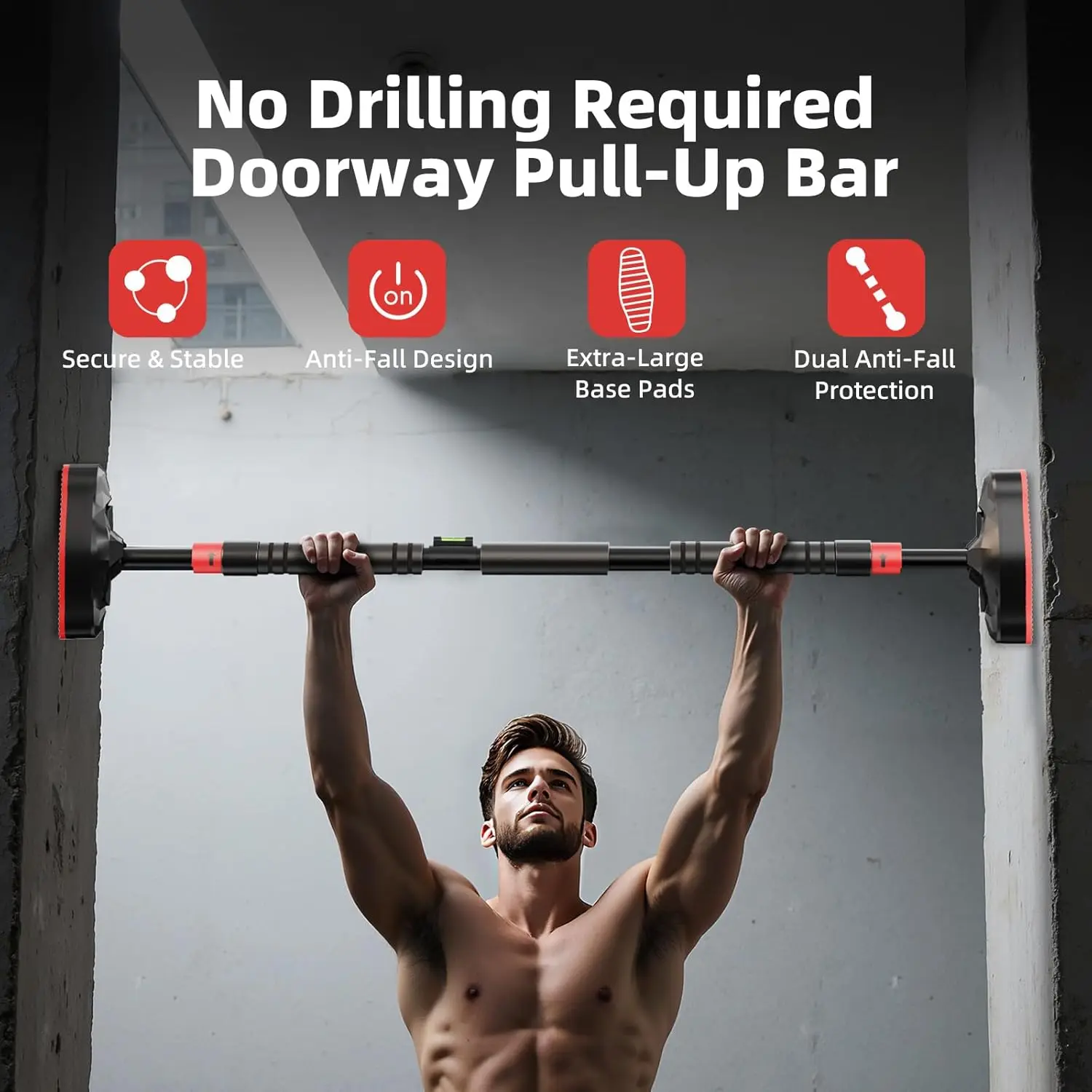 Adjustable Doorway Pull-Up Bar for Home Gym Multi-Position Chin-Up Bar Upper Body Strength Training No Drill Fitness Equipment Anti-Slip Secure Workout Bar for Home Apartment Dorms Office Bodybuilding Exercise