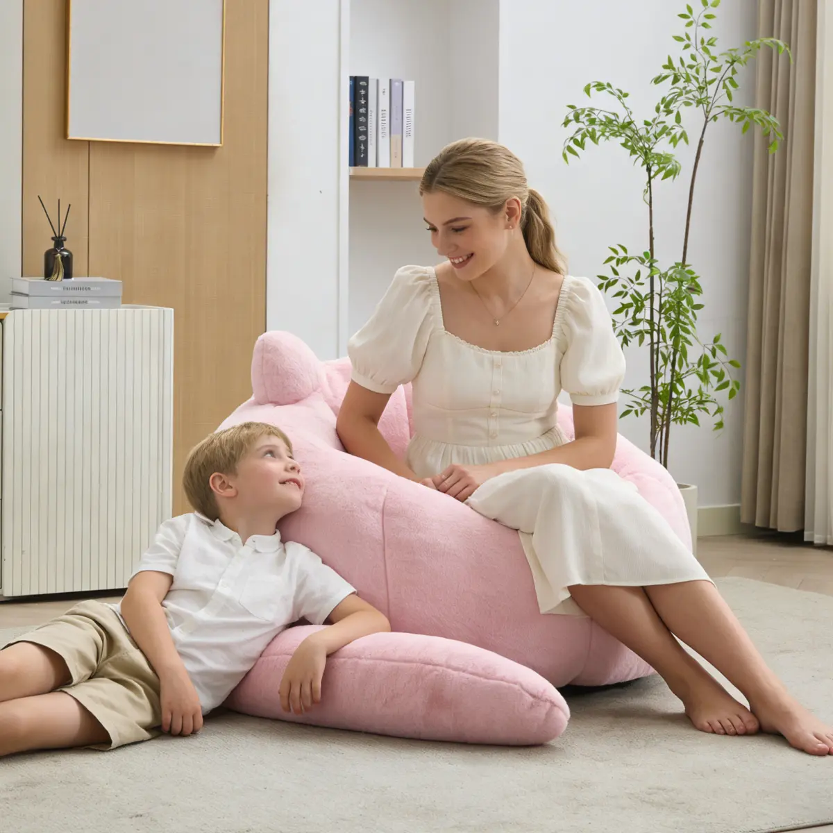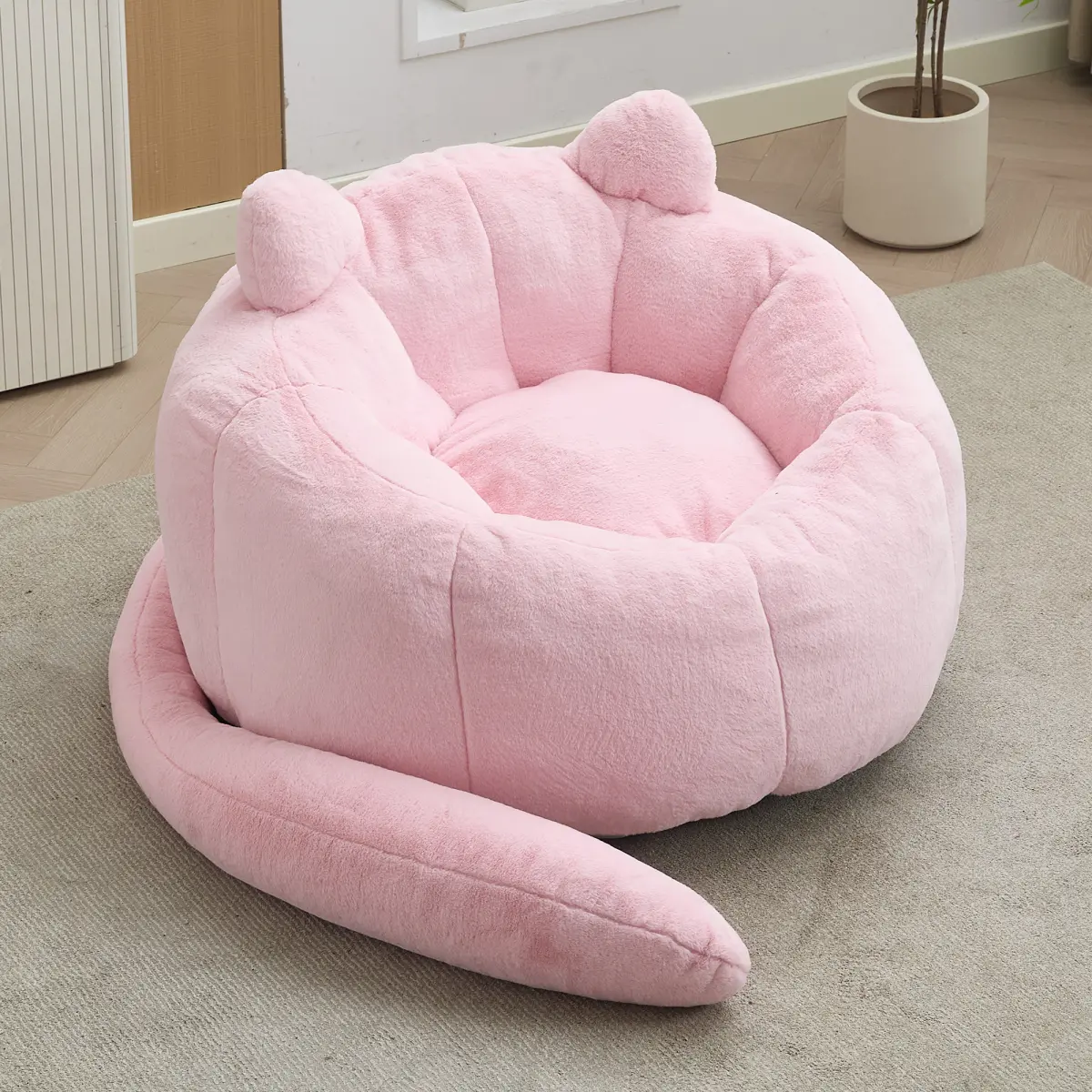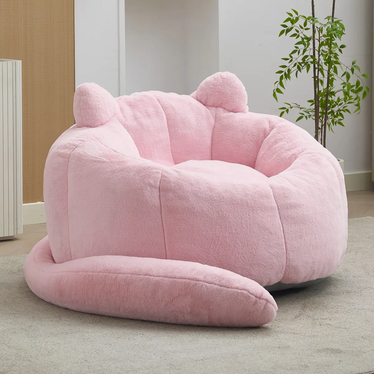 Relax in ultimate comfort with this compression bean bag sofa.Available in lotus shape (two sizes) and adorable cat shape with long ears, each sofa requires no assembly – simply unpack and enjoy.Ergonomically designed for adults, filled with high-density memory foam that maintains shape and provides lasting support for reading, gaming, or napping.Soft faux fur fabric is anti-fouling and easy to clean, while a non-slip base keeps the sofa stable on any floor surface.A convenient pull ring (on lotus models) allows easy movement.Perfect for living rooms, bedrooms, dorms, or playrooms.Multiple color options available.