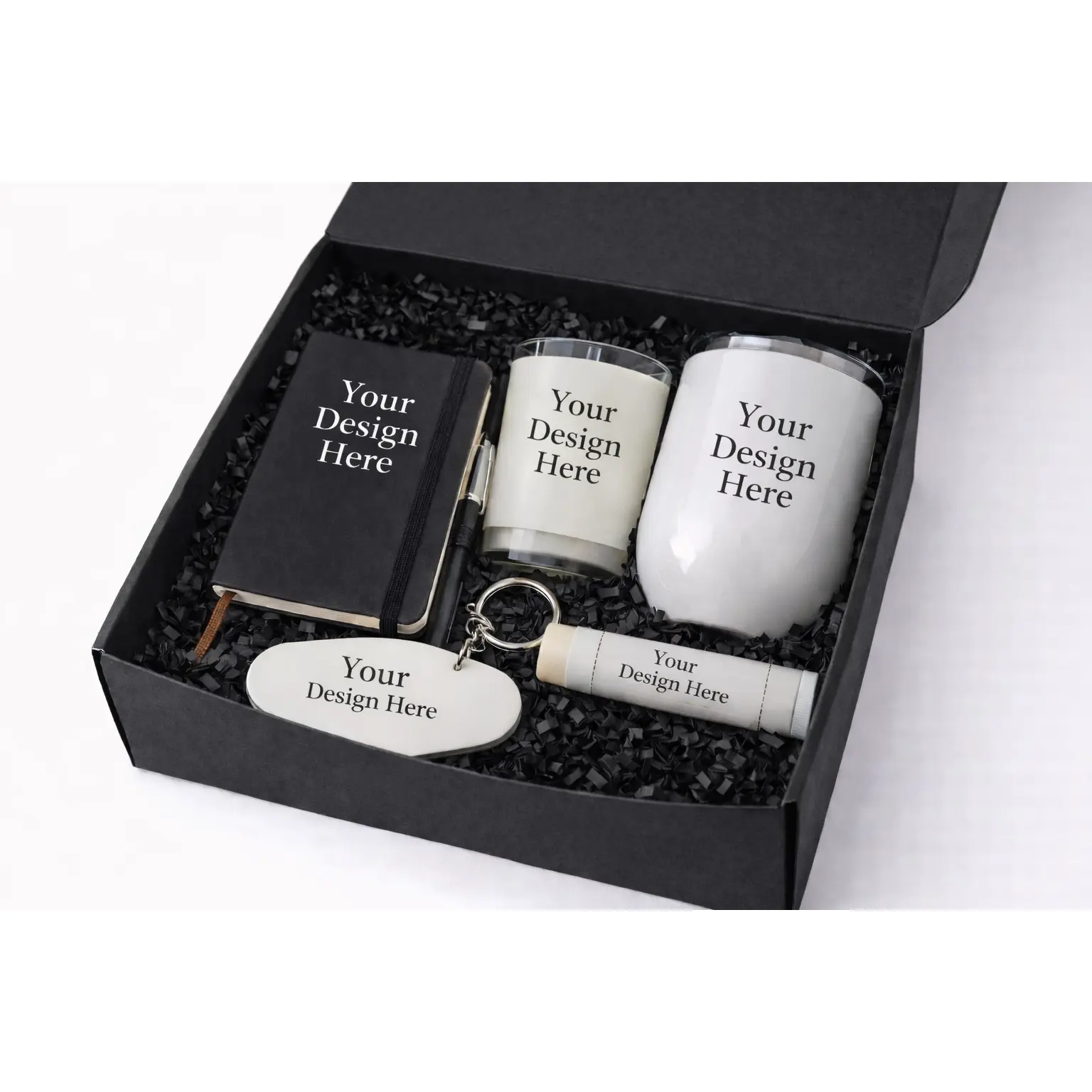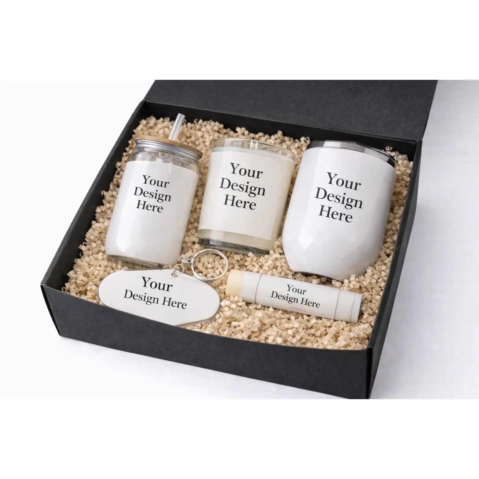Celebrate your special day with this elegant gift box, perfect for guests. Each box includes a premium tumbler, scented candle, glass can tumbler, soothing lip balm and charming keychain. A thoughtful keepsake that combines style and practicality, ideal for thanking your loved ones.