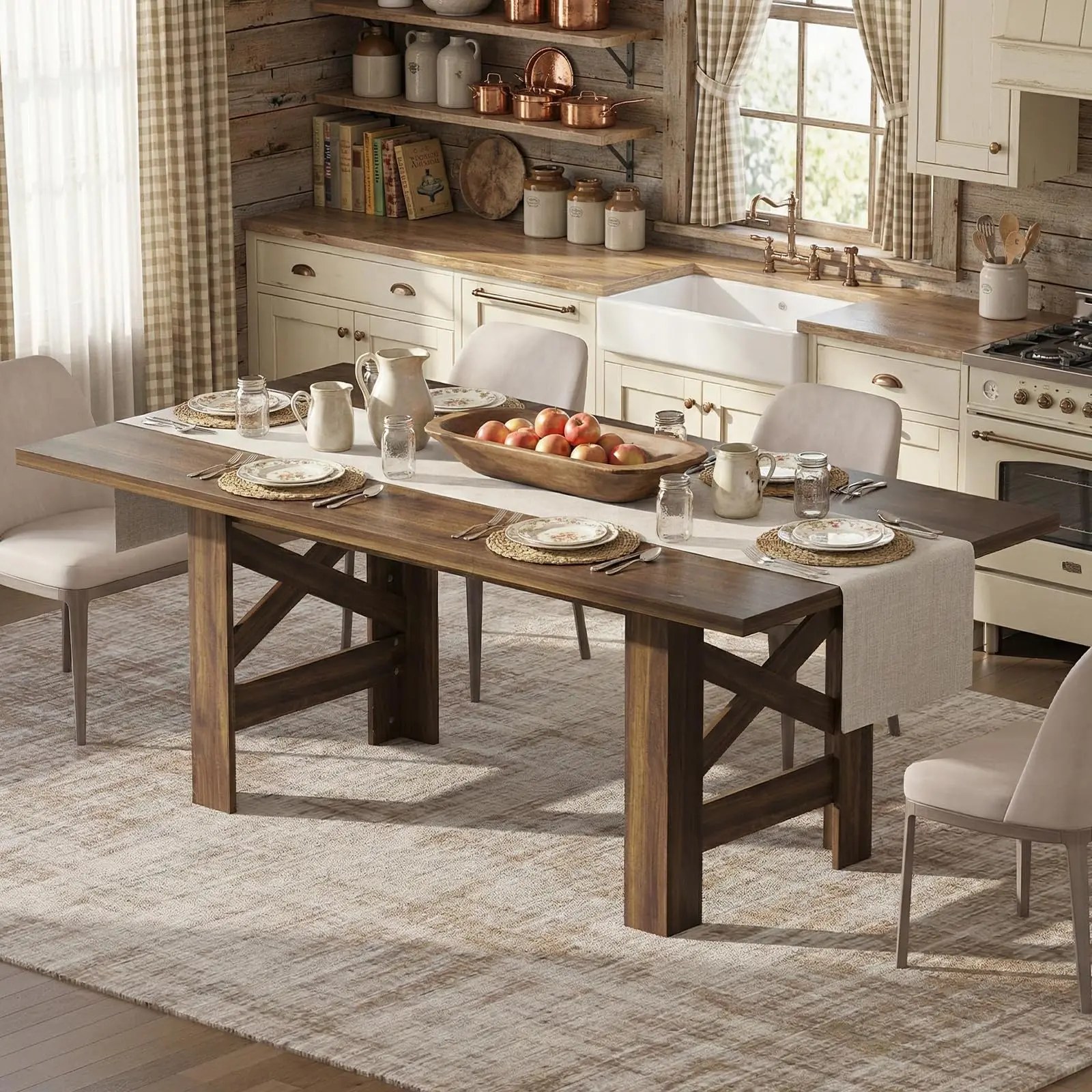 · 4. Rustic Charm, Modern Appeal: the cozy and inviting character of a classic farmhouse. This farmhouse dining room table for 6, with its unique barn-style pattern, brings a piece of timeless country into your home. The elegantly rustic look serves as a stunning centerpiece, adding warmth and sophisticated style to your dining space—making it the heart of your home