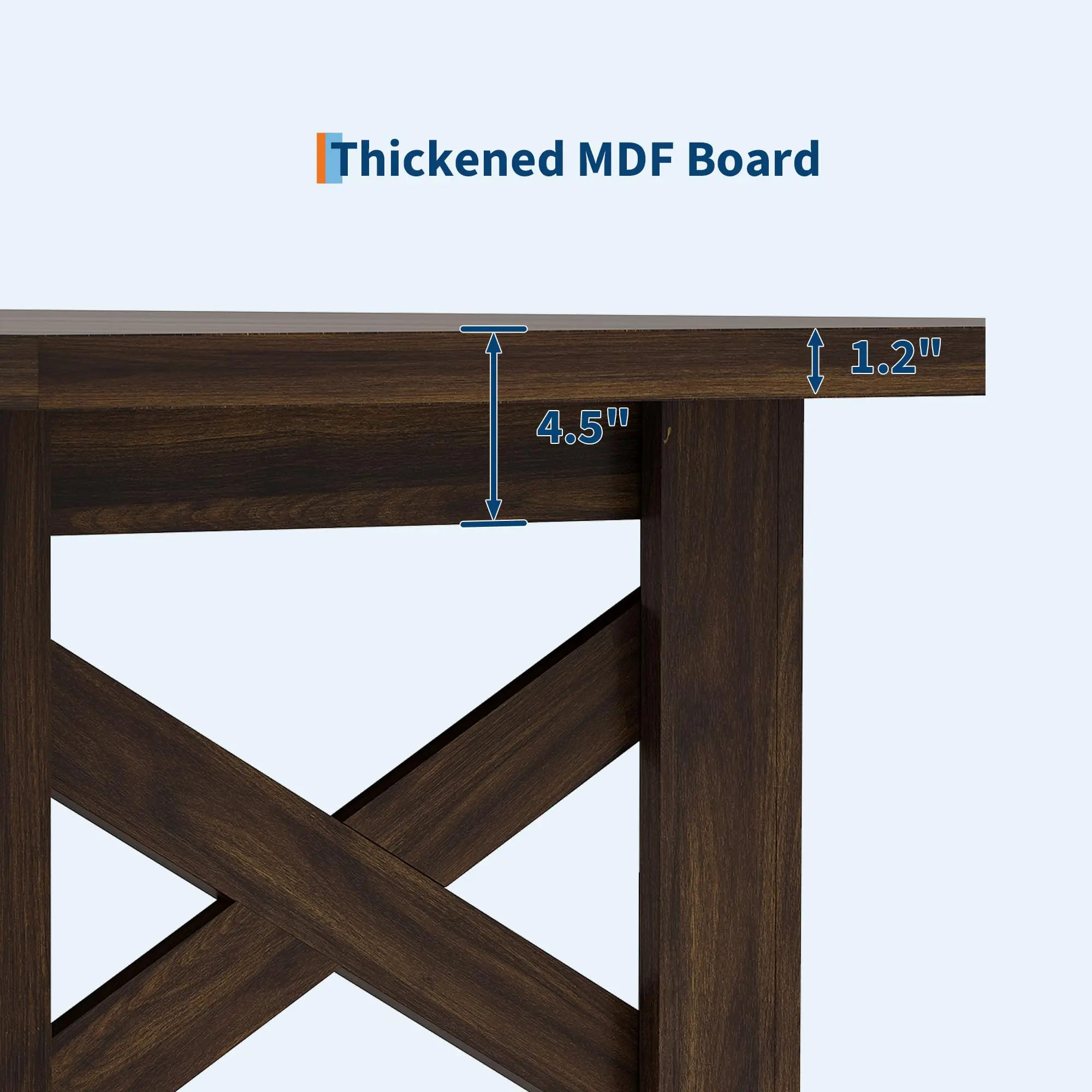 · 3. Exceptionally Sturdy Base Construction: We’ve taken extra steps to reinforce this farmhouse wooden kitchen table for lasting stability. By integrating additional MDF panels, metal supports, and strategic bracing directly into the base and frame, we effectively eliminate wobble and provide unwavering support. Dine with confidence—and enjoy every meal with complete peace of mind.
