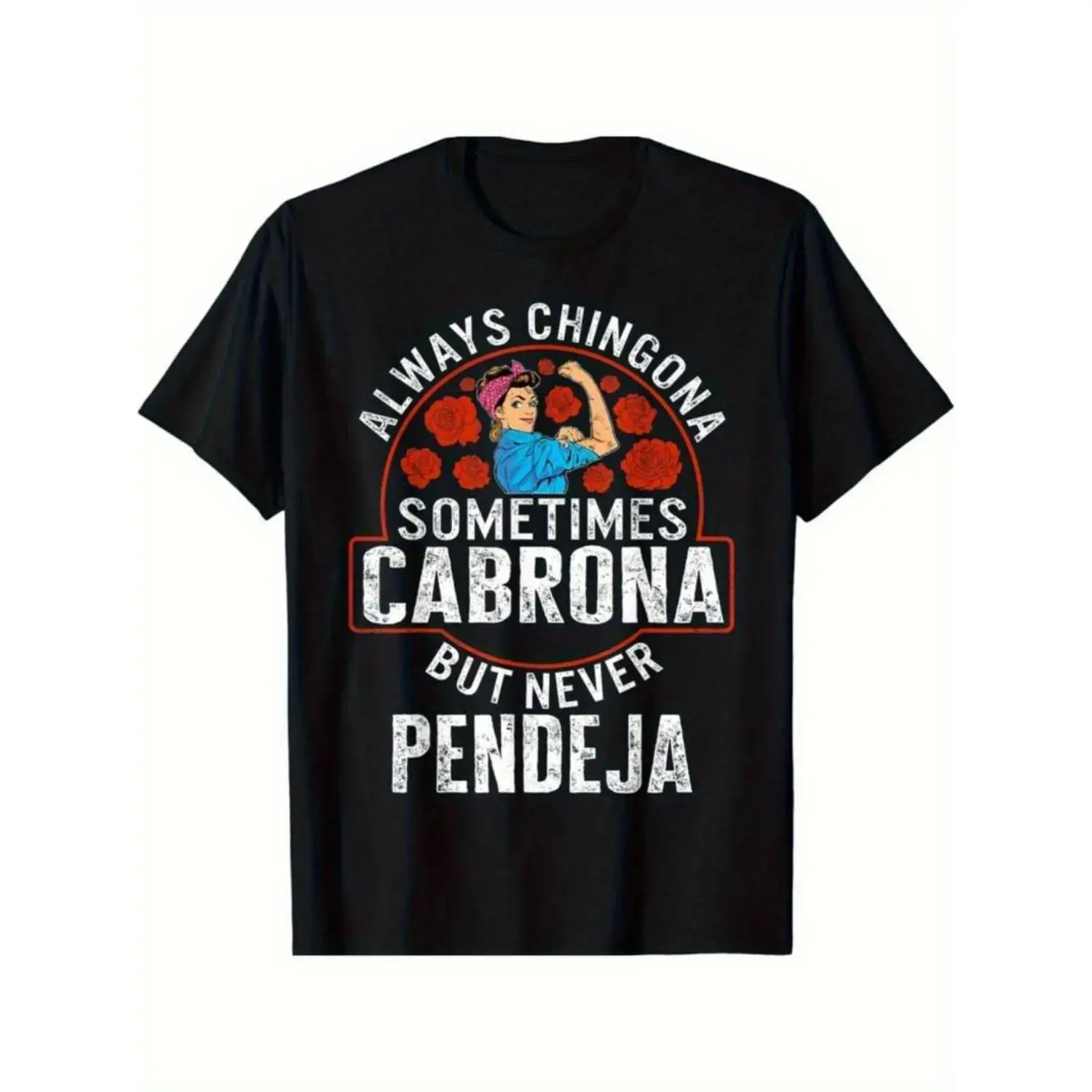 Cotton Empowering Latina T-Shirt - 'Always Chingona, Sometimes Cabrona, But Never Pendeja