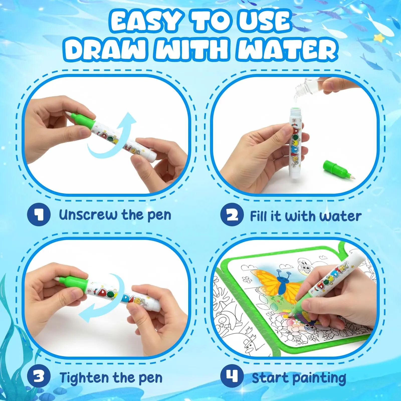 Just add water and watch colors appear—then fade for endless, mess-free fun. Perfect for creative play at home or on the go.