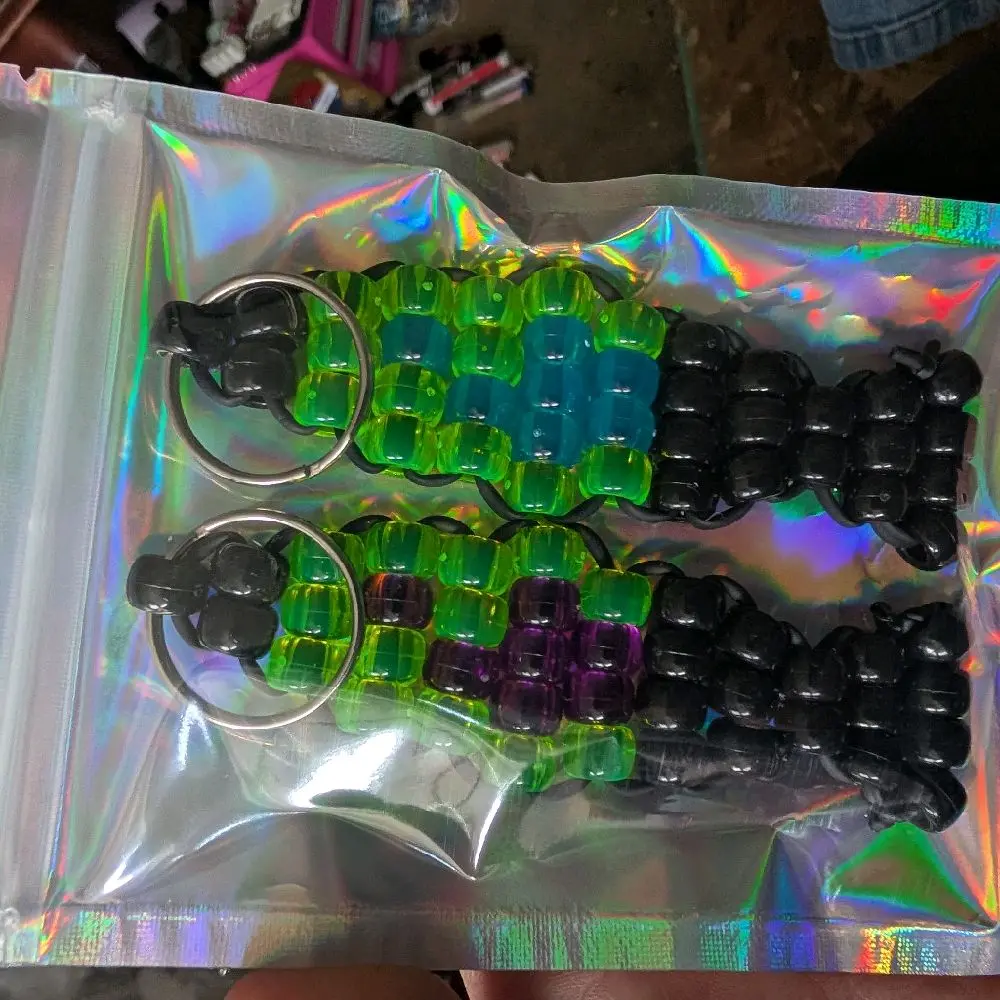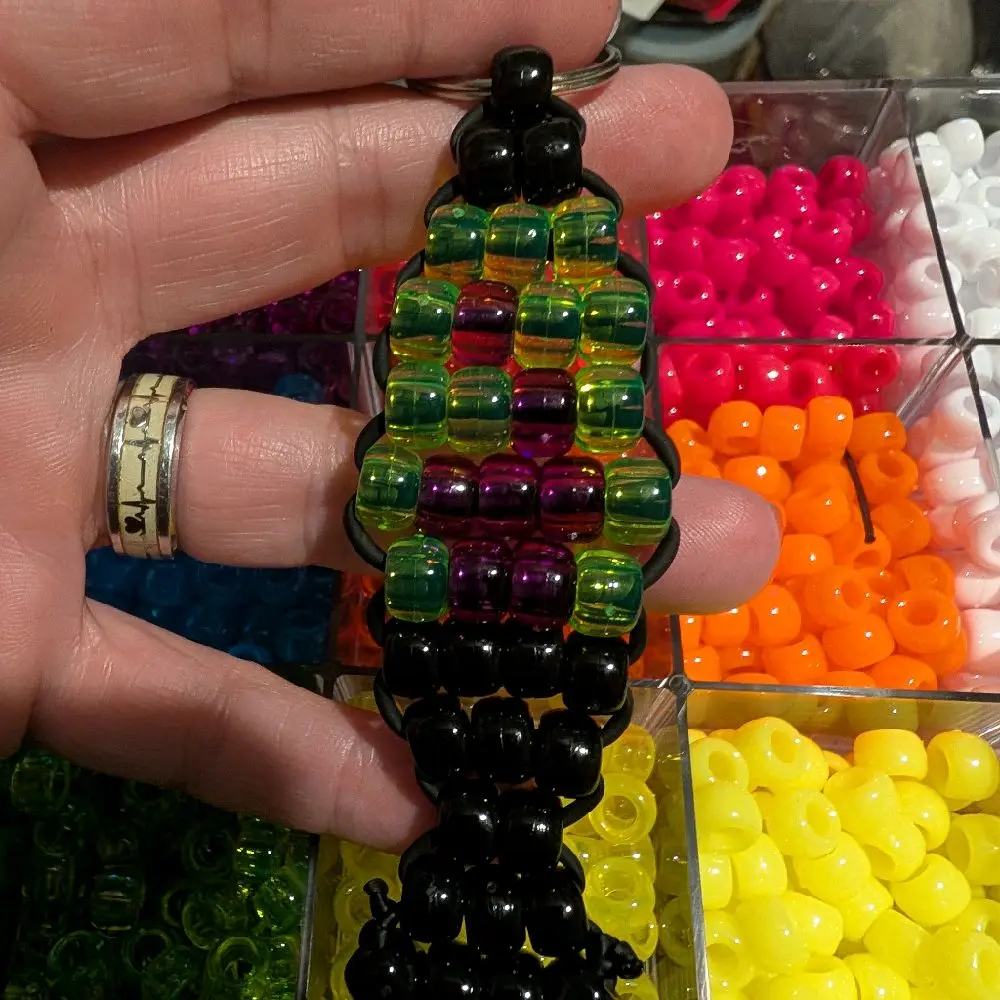 ·The Kandi lava lamp keychain is a fun accessory. 🎨 It features pony beads strung together to mimic a lava lamp. This creative design adds a playful touch to your keys. Perfect for those who love quirky, eye-catching items.