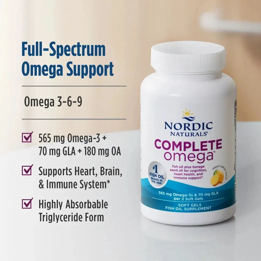 Discover the benefits of Nordic Naturals Complete Omega Lemon. This supplement supports healthy skin, joints, and cognition. It's a vitamin-rich formula designed to enhance your well-being. Perfect for those seeking natural support for their health.