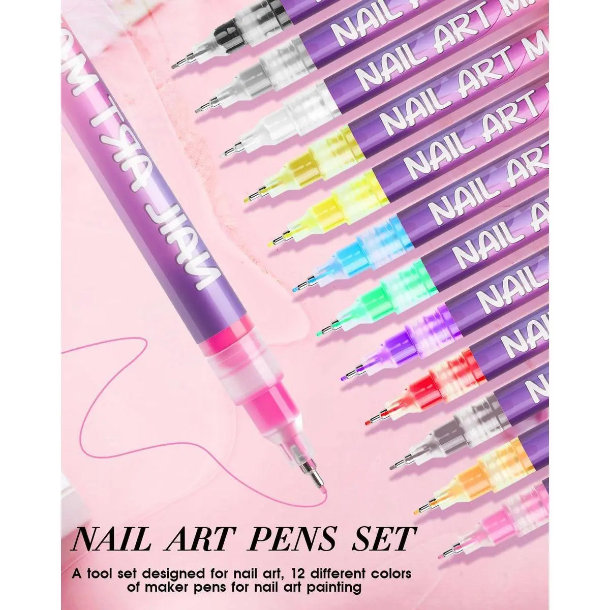 🌈【Easy to Use】No additional tools like nail brushes are needed—effortlessly create various patterns (dots, lines, flowers, etc.) on any nail color! Remember to cap the pens tightly after use to prevent drying out.