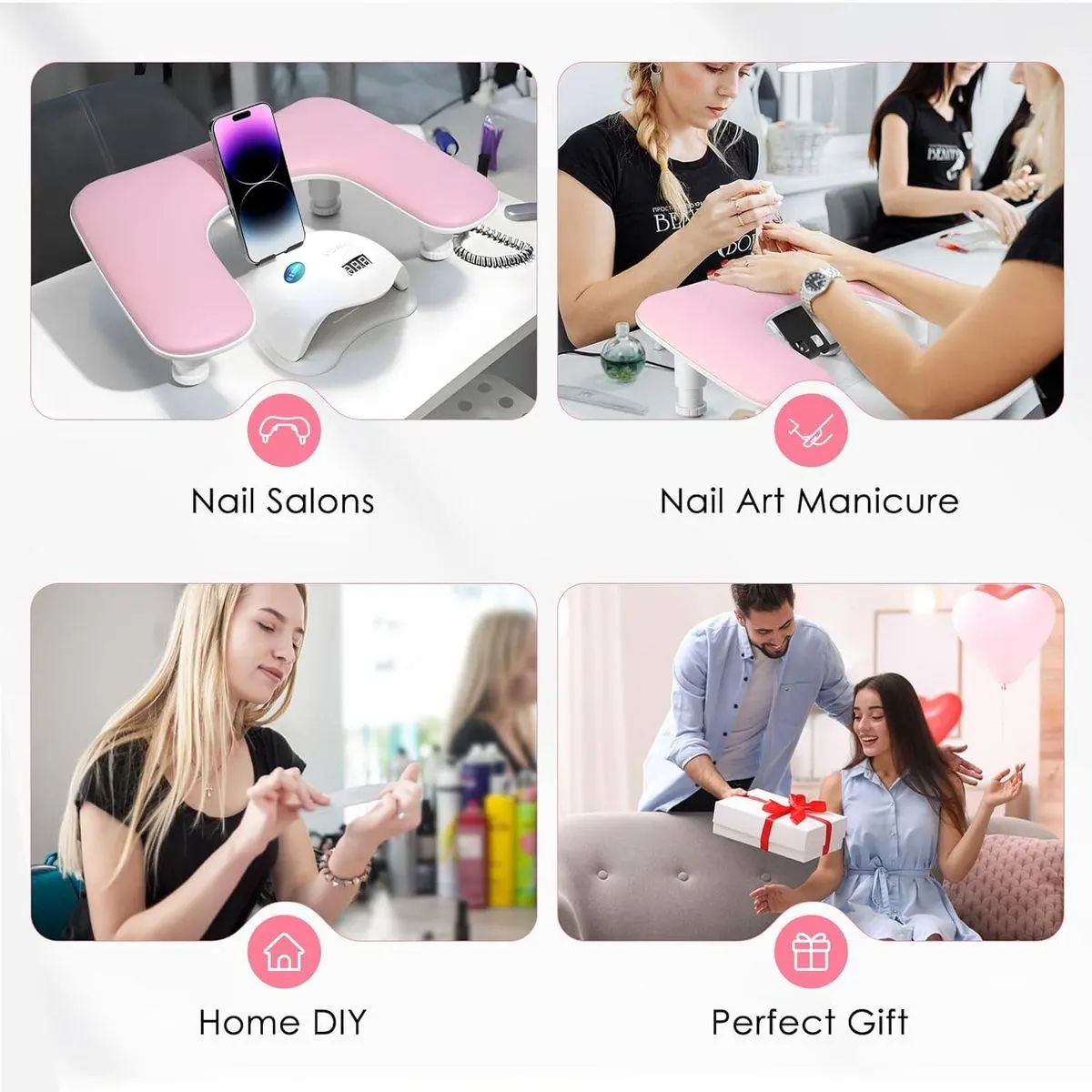 Salon-Home Ready: 17.1"x11"x5.9" hand rest fornail tech cushion fits 90 % of LED/UV lamps. Arrives gift-boxed for Valentine's, birthdays, Christmas, or any nail art beginners or professional nail salons