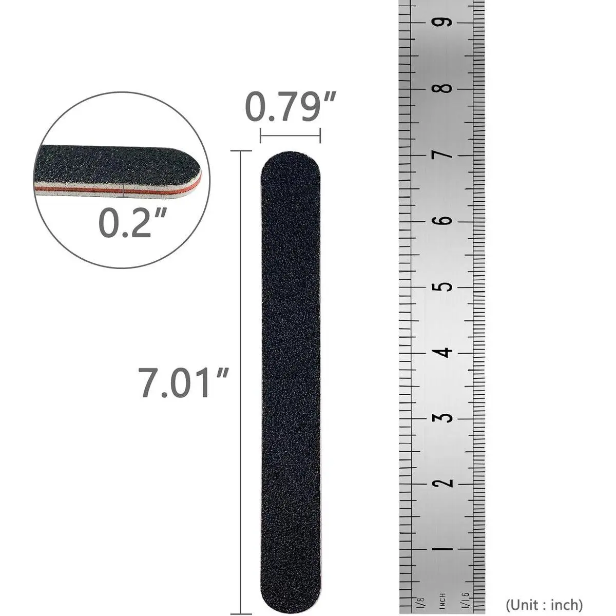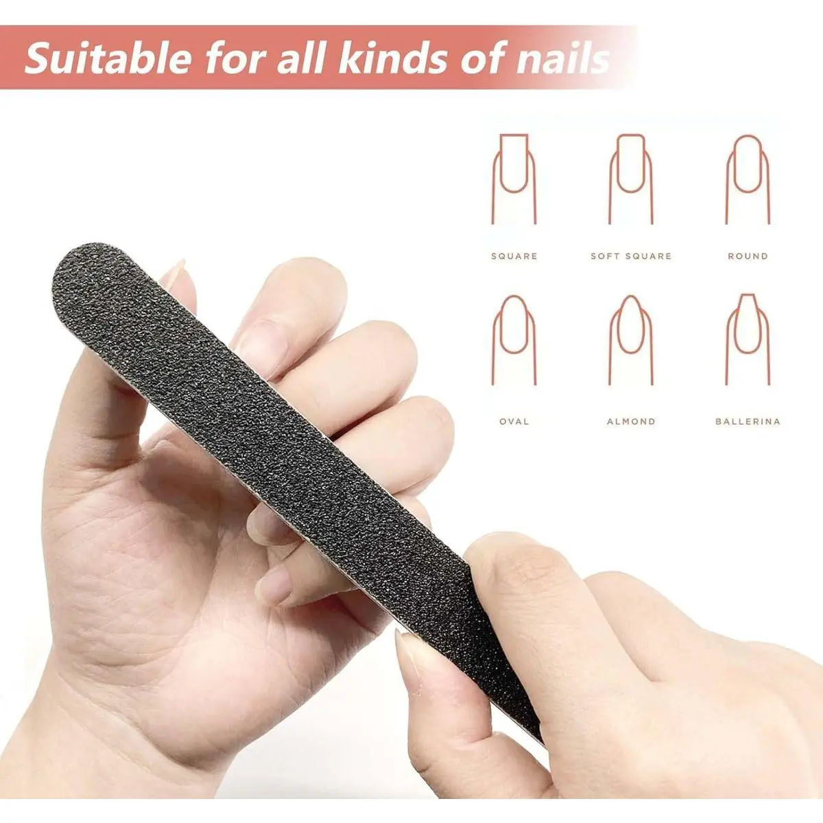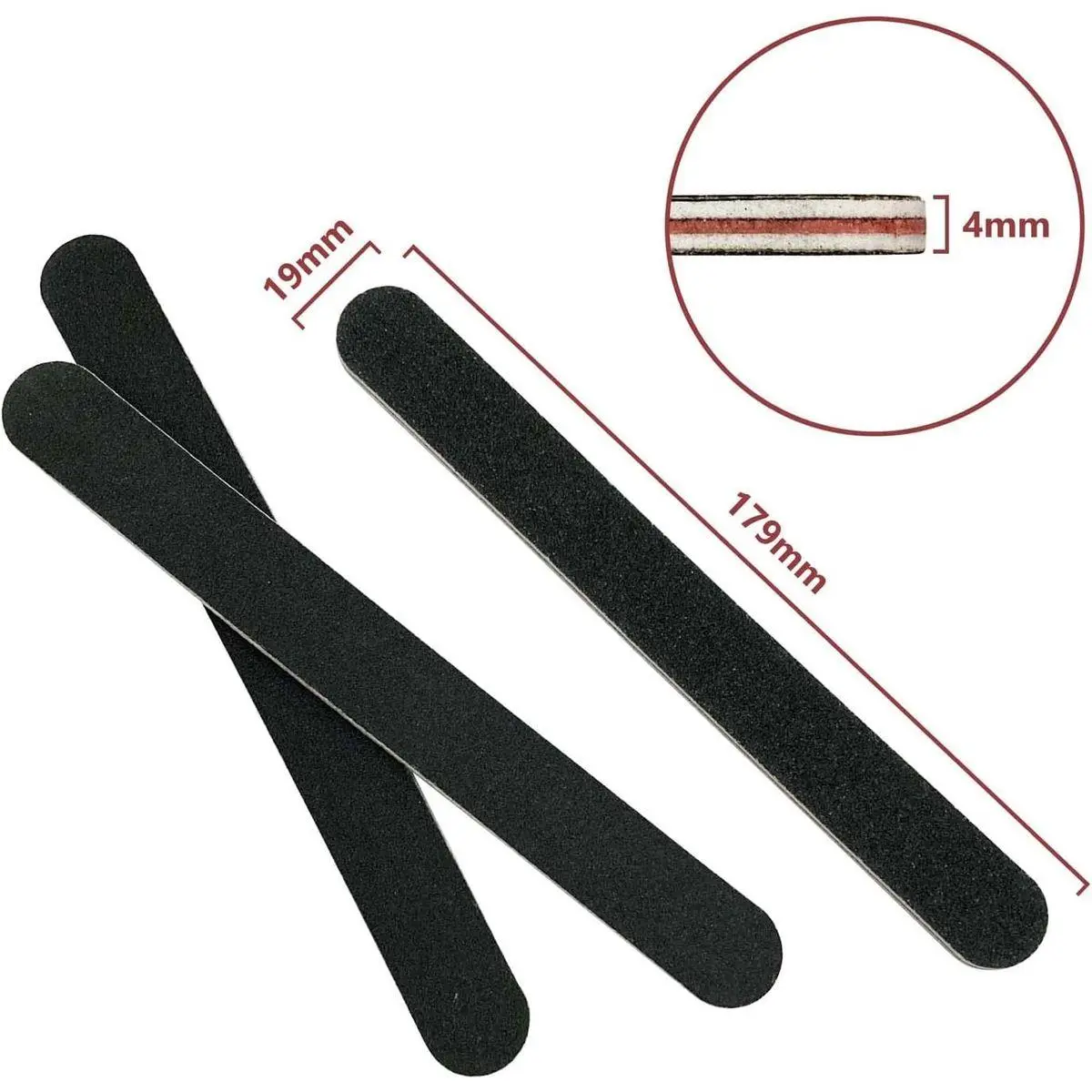 3 Pack Professional Emery Boards, 100/180 Grit Nail File for Acrylic and Natural Nails, Reusable, Black