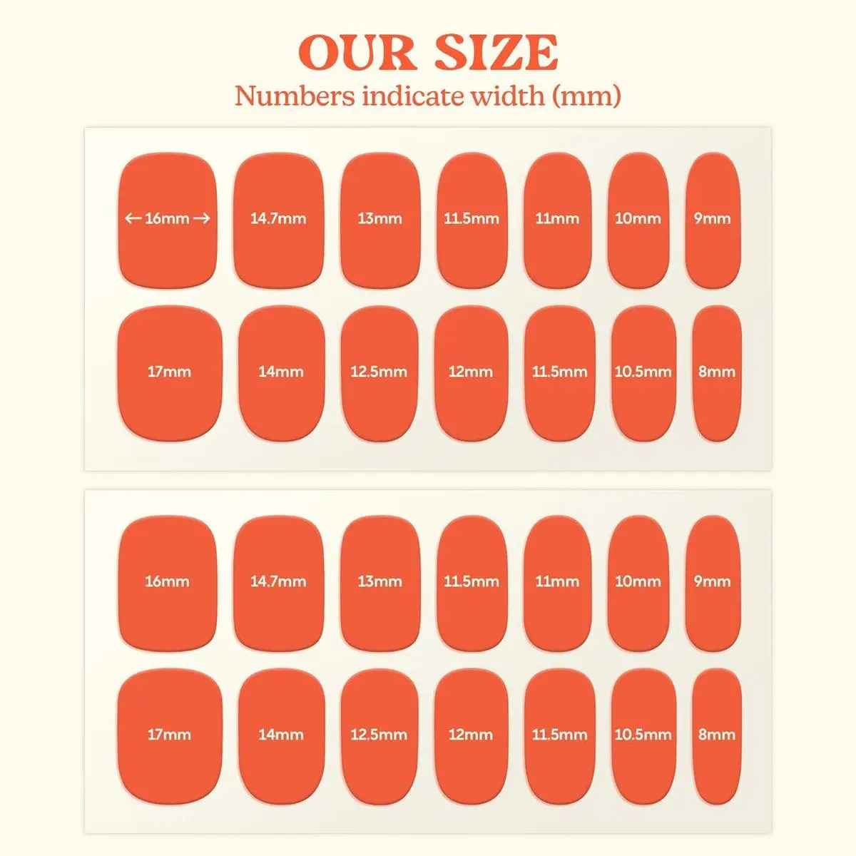 Fits all nail size and shapes - Use your palm to warm them up. Once the strips are warmed, they can be easily pulled for the perfect fit on your nails. Attach the nail strip along one side of the nail, and then stretch it to fit the other side of the nail.