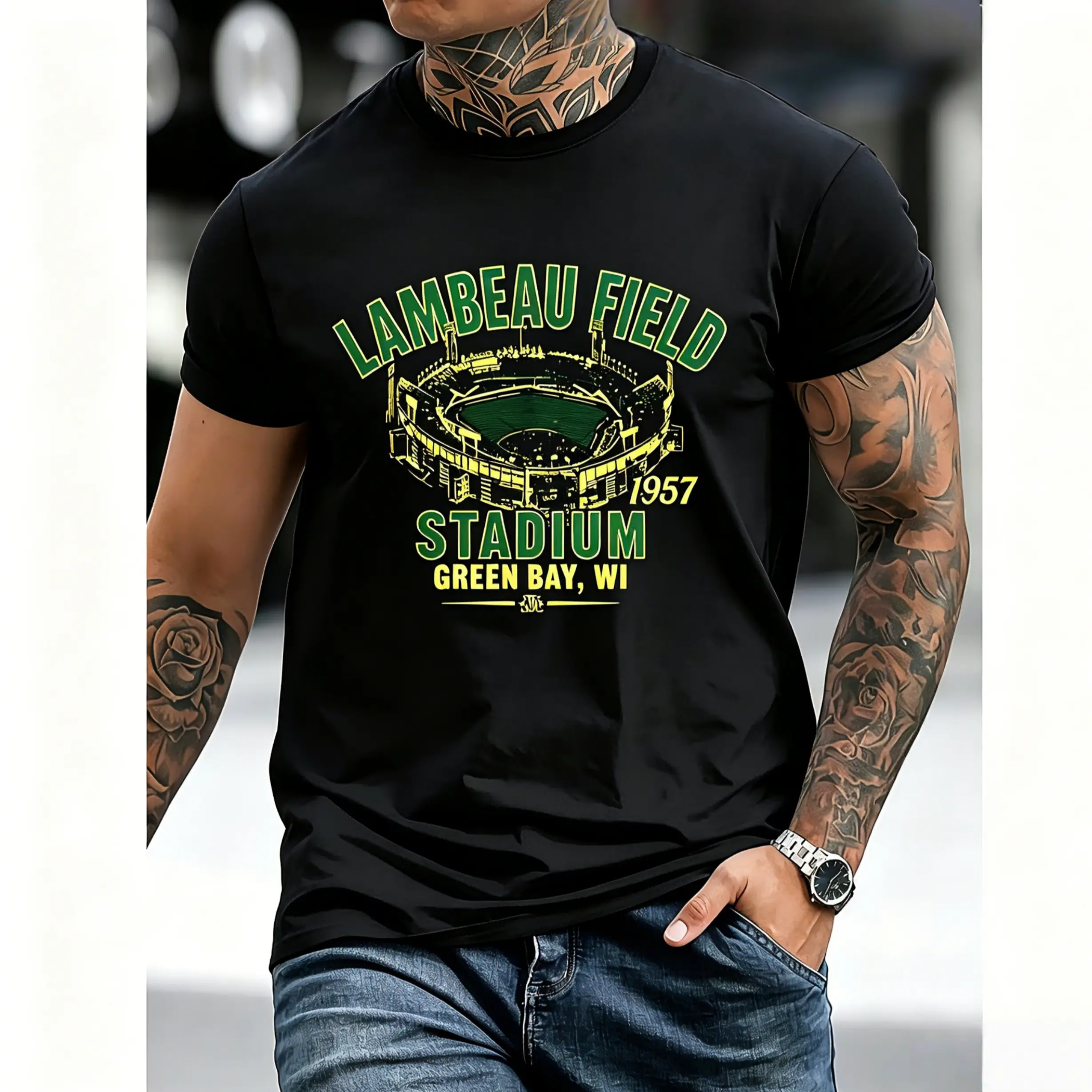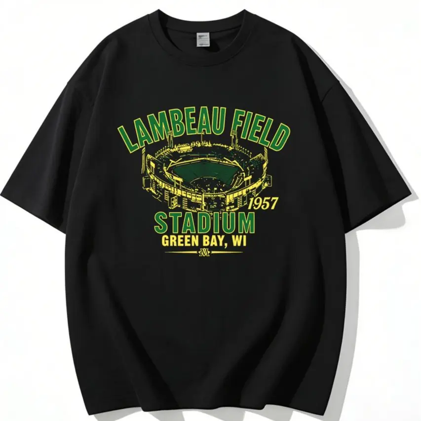 This isn‘t just another team logo tee. It’s a tribute to the most hallowed ground in NFL history. Featuring a hand-drawn illustration of Lambeau Field with the iconic 1957 founding year and Green Bay Wisconsin this vintage-inspired tee is made for the true Packers fan who values legacy over flash. Wear it on game day at the tailgate or any day you want to carry a piece of football history.