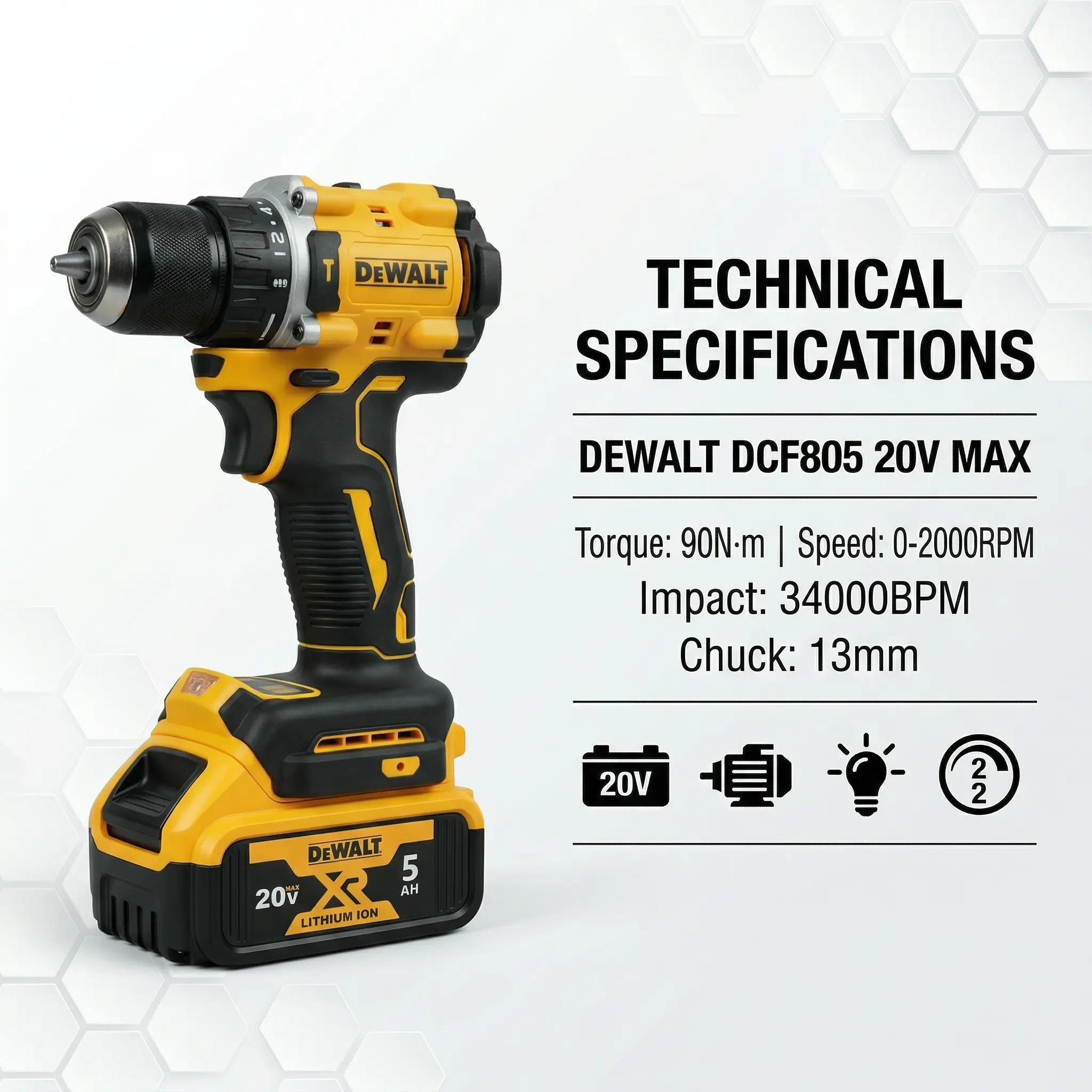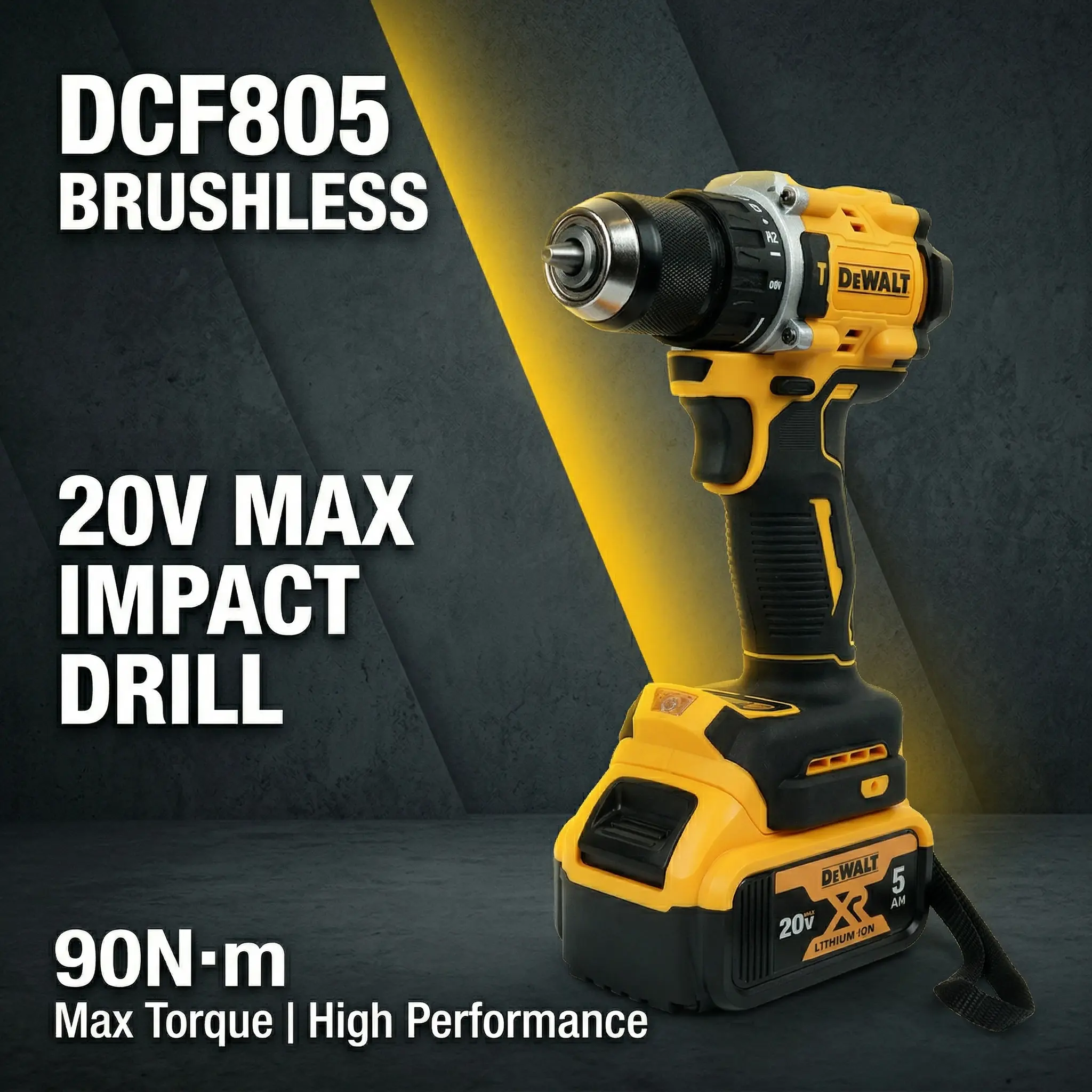 DEWALT DCF805 20V Impact Driver with Battery & Charger – 1/2 Inch Chuck – 0-2000 RPM – For General Fastening Applications