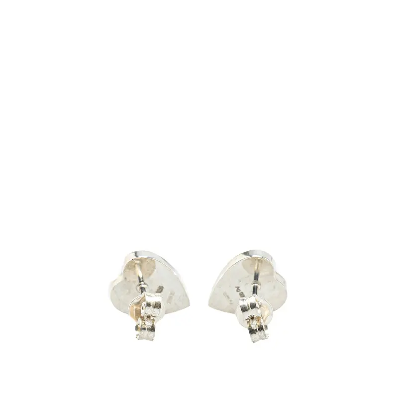 Pre-owned GUCCI Sterling Silver 925 (Ag925) Small Leather Goods SV925 Heart Motif Stud Earrings Silver