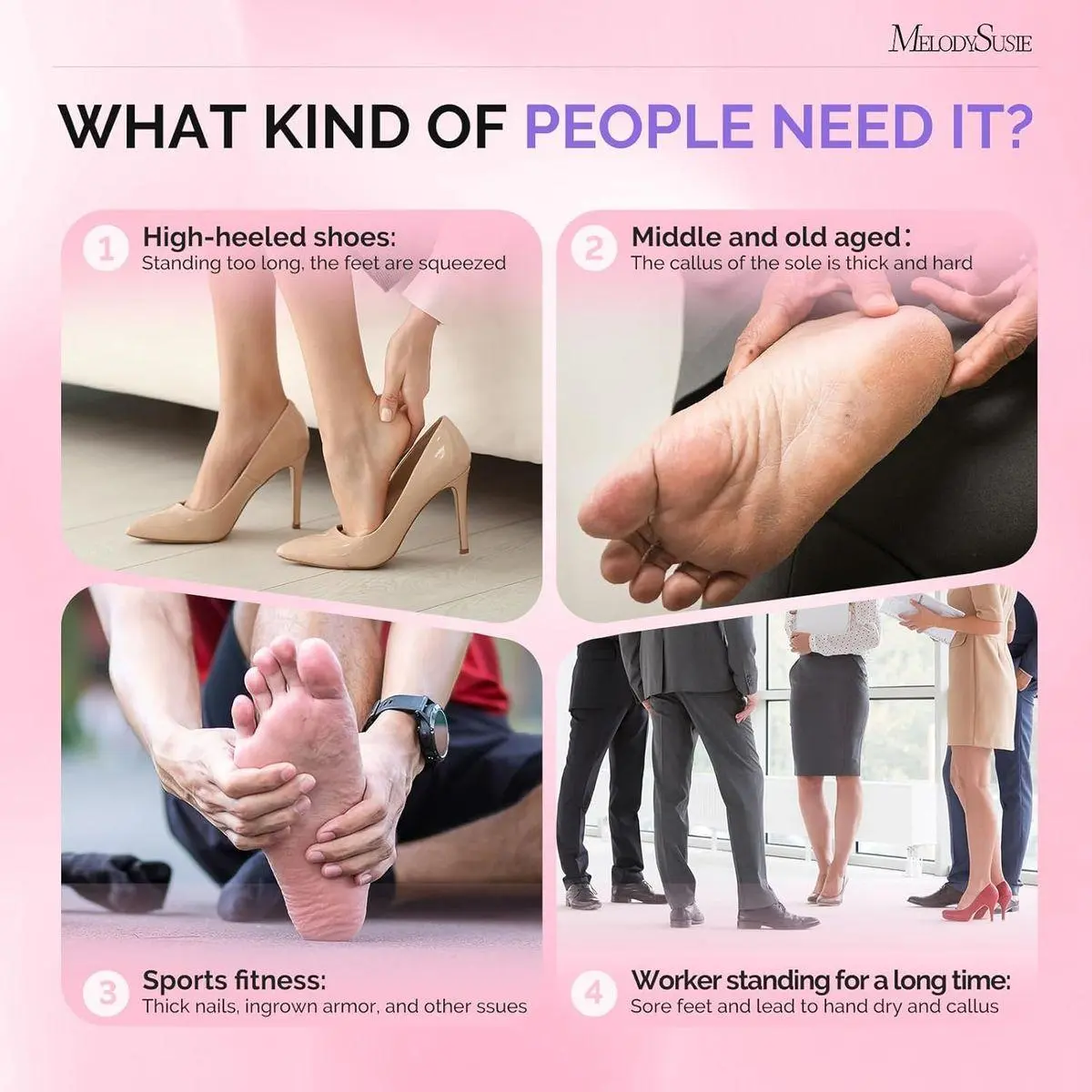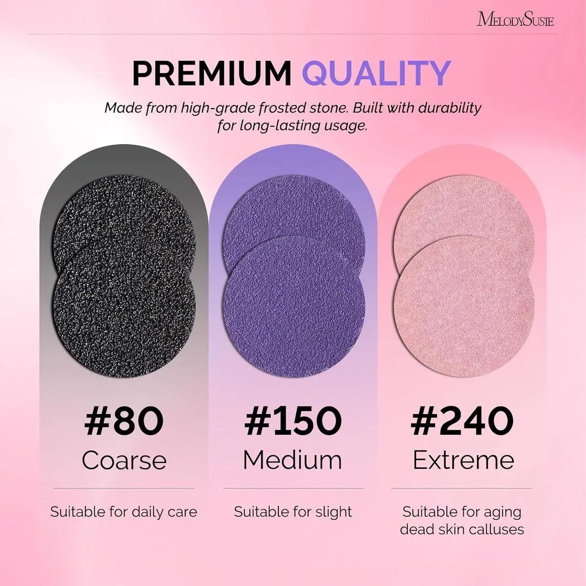 Easy To Use: The MelodySusie sandpaper featured with a round shape design with a smooth surface can fit your skin very well to remove the dead skin quickly. The self-adhesive sandpaper in the backside, tear off the protective layer and paste it to the tool, will not fall off when working and is easy to remove after use.