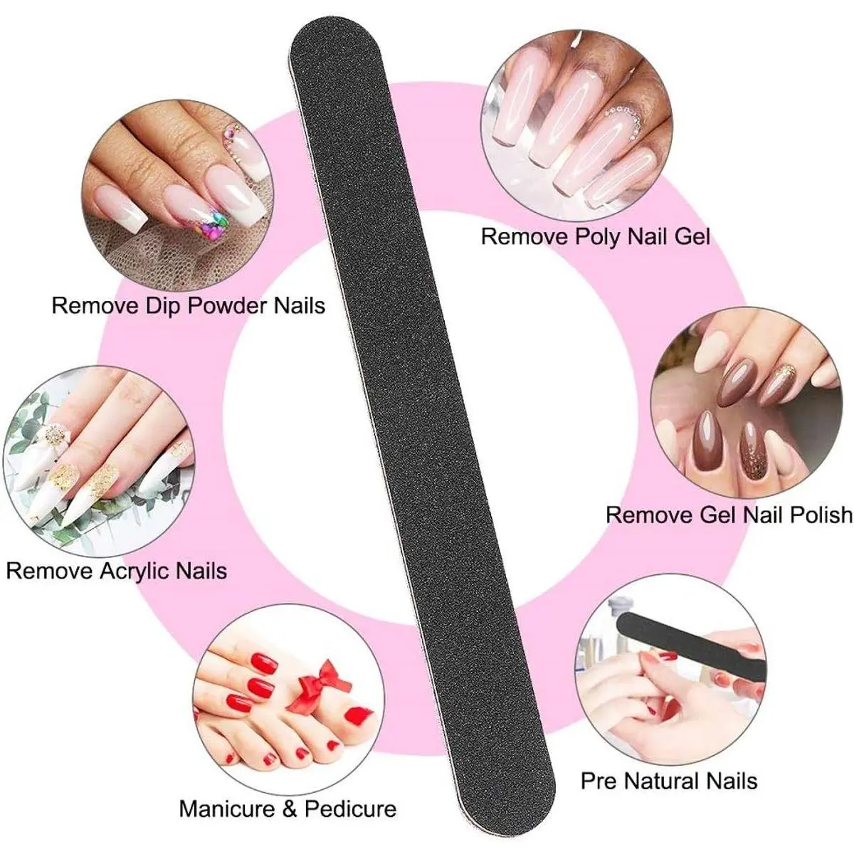 12PCS DOUBLE SIDED NAIL FILER - 100/180 high grit, 100 grit is more rough to shaping and filing when you have to get a lot of bulk off, 180 grit is good for smooth to mild filing and smoothing up your nail edge
