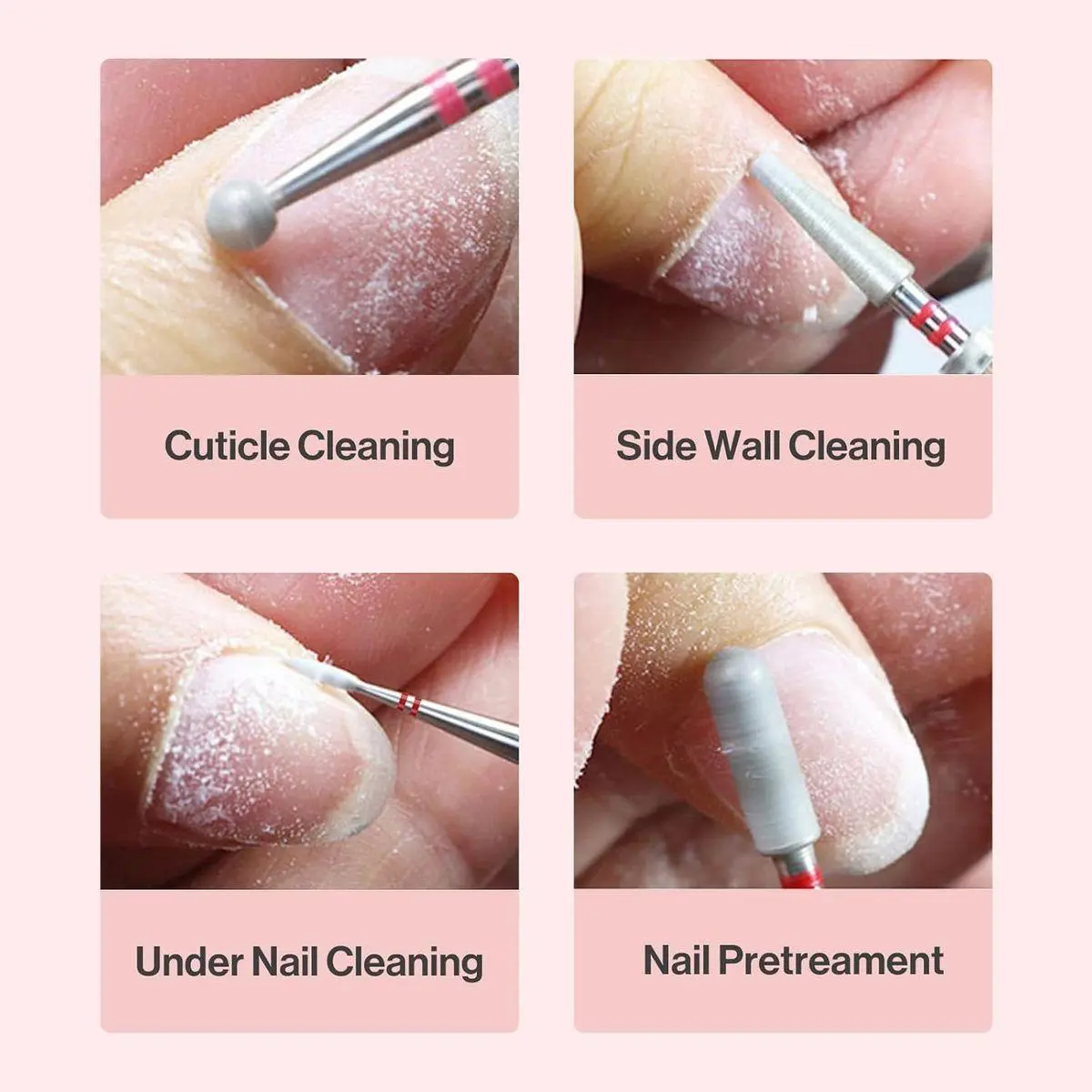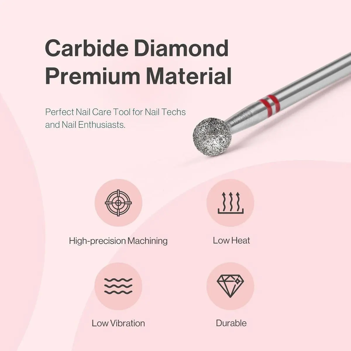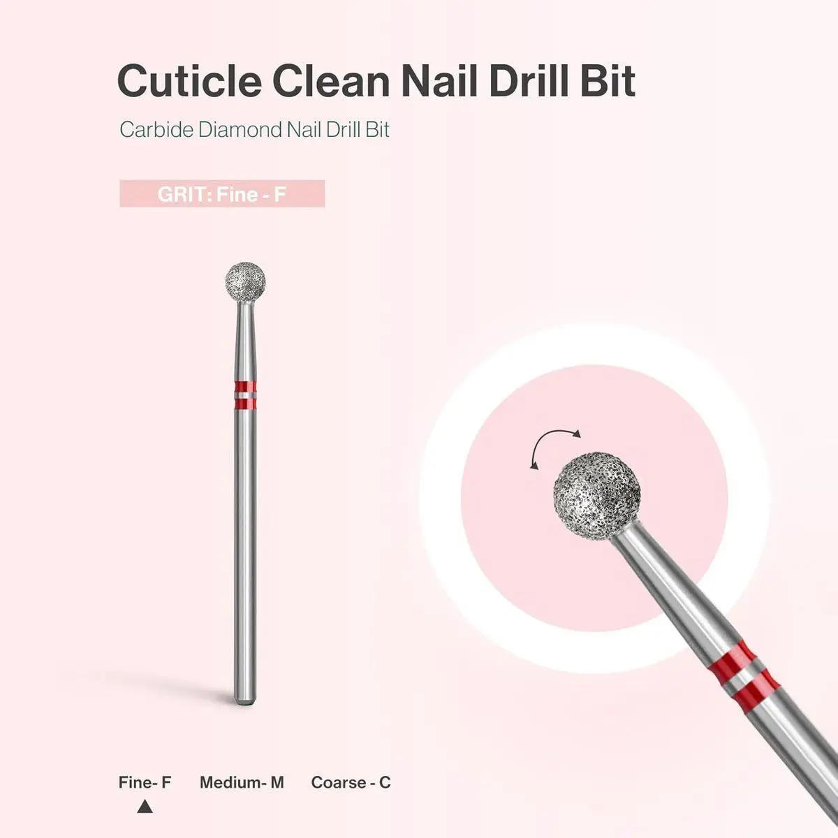 Carbide Diamond Cuticle Cleaner: Professional design for cuticle removing, sidewall dead skin cleaning, and nail preparation. The ball head bit can gently and effectively remove dead skin and cuticles from the nail bed. Perfect manicure preparation tool for nail salons and professional nail techs.