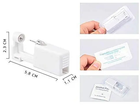 【Package Contents】You will receive 2 pack ear piercing guns, 2 pieces ear studs (Preloaded in the ear pierce gun) and 2 pieces alcohol pads.ear studs Crafted with superior metal,Each unit combines a ear piercing gun with a built-in ear stud