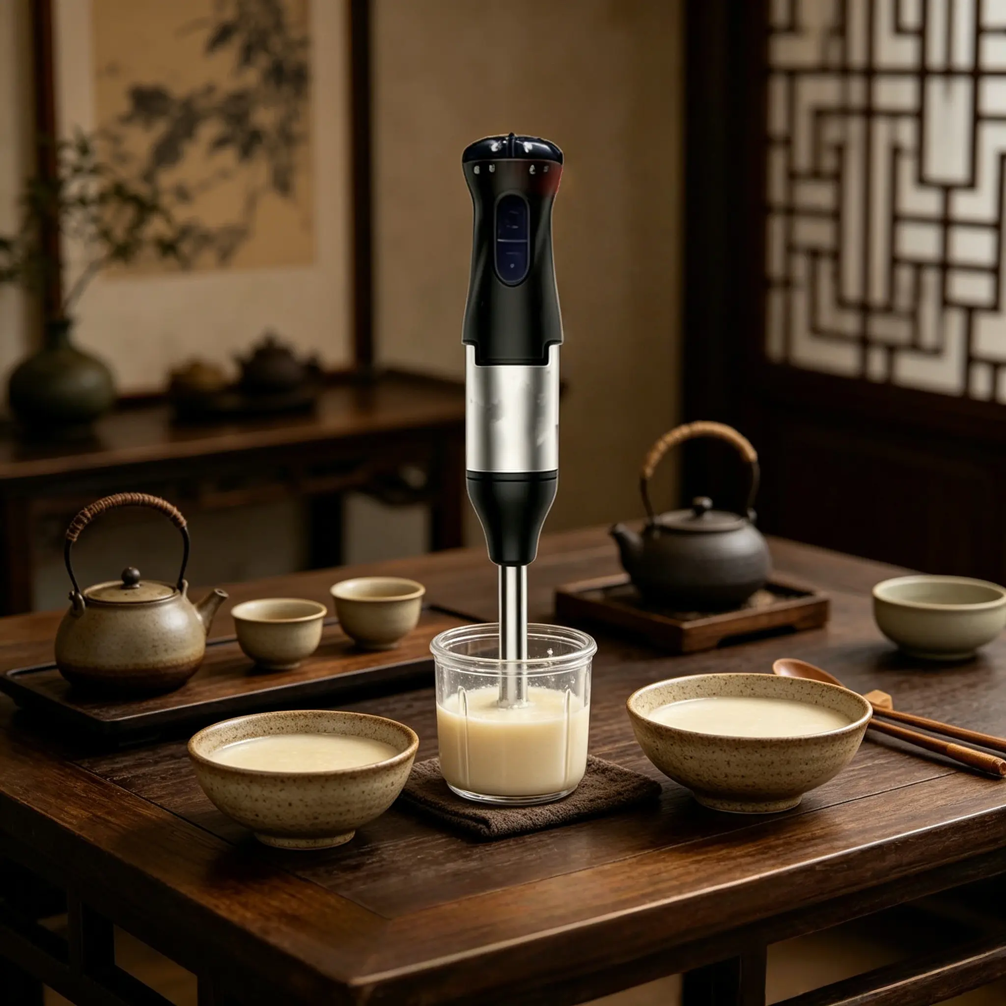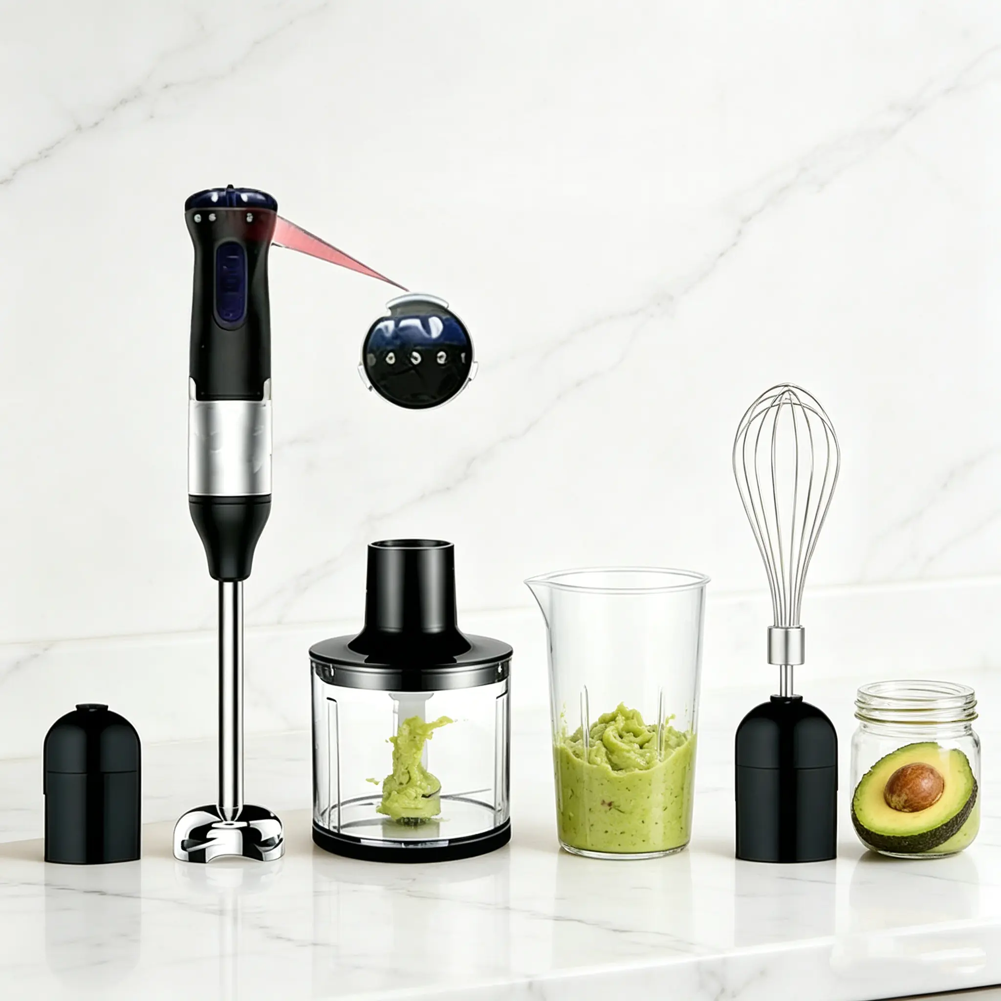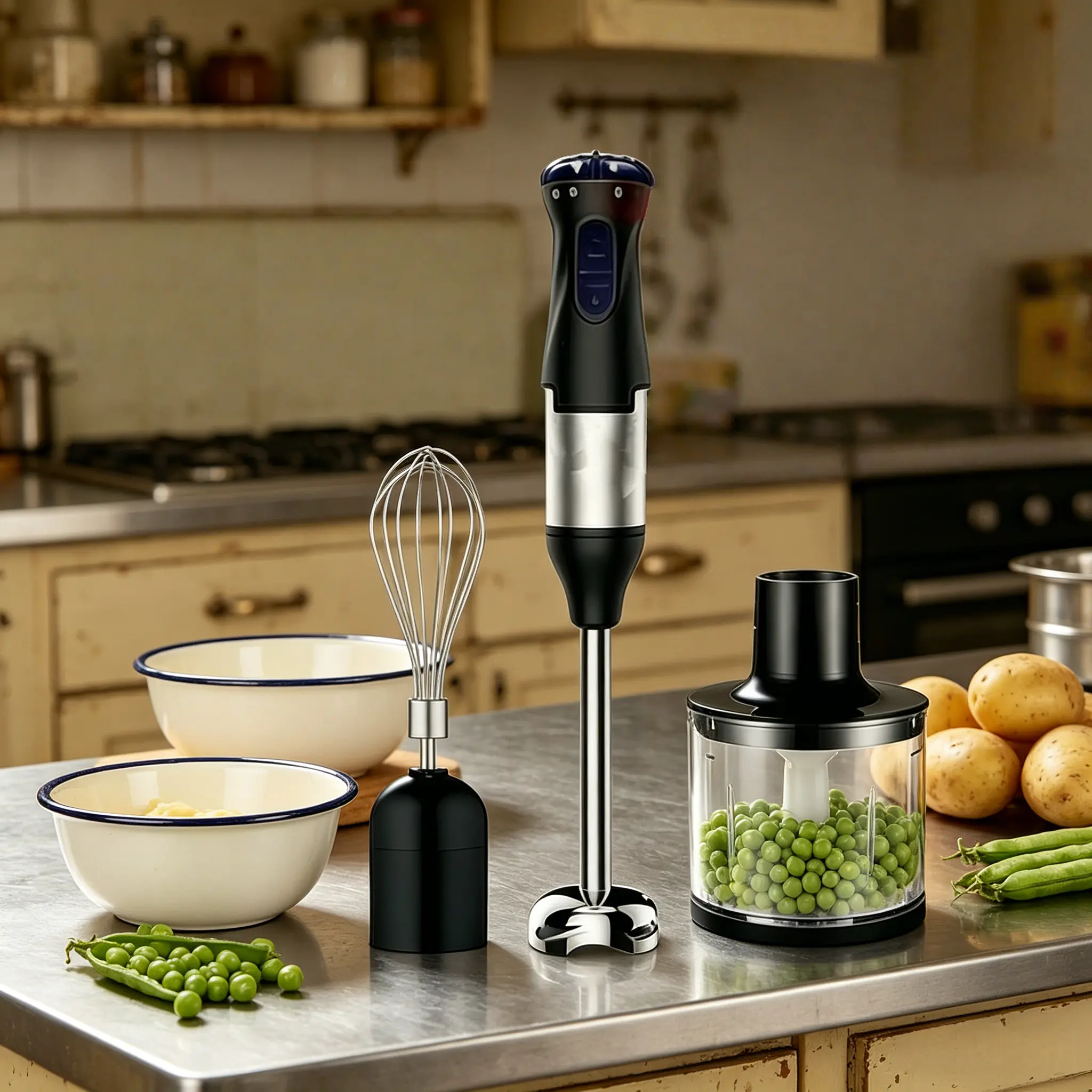 This handheld blender is a must-have for your kitchen. It combines a high-speed immersion blender, chopper, and compact baby food machine. Perfect for making smoothies, soups, puree, and daily meals. Its versatile design simplifies meal preparation.