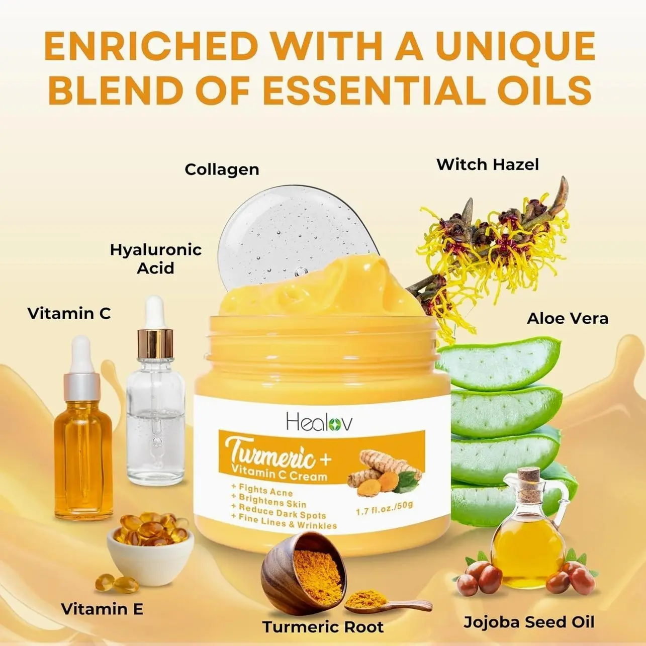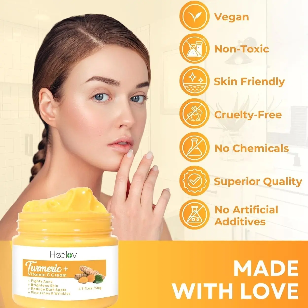 · QUALITY NATURAL INGREDIENTS: Made from the purest ingredients, the all-natural turmeric face cream is as pure as they come. Proudly designed in the USA, 100% Phthalate-free, with No additives, synthetics, or artificial fragrances.
