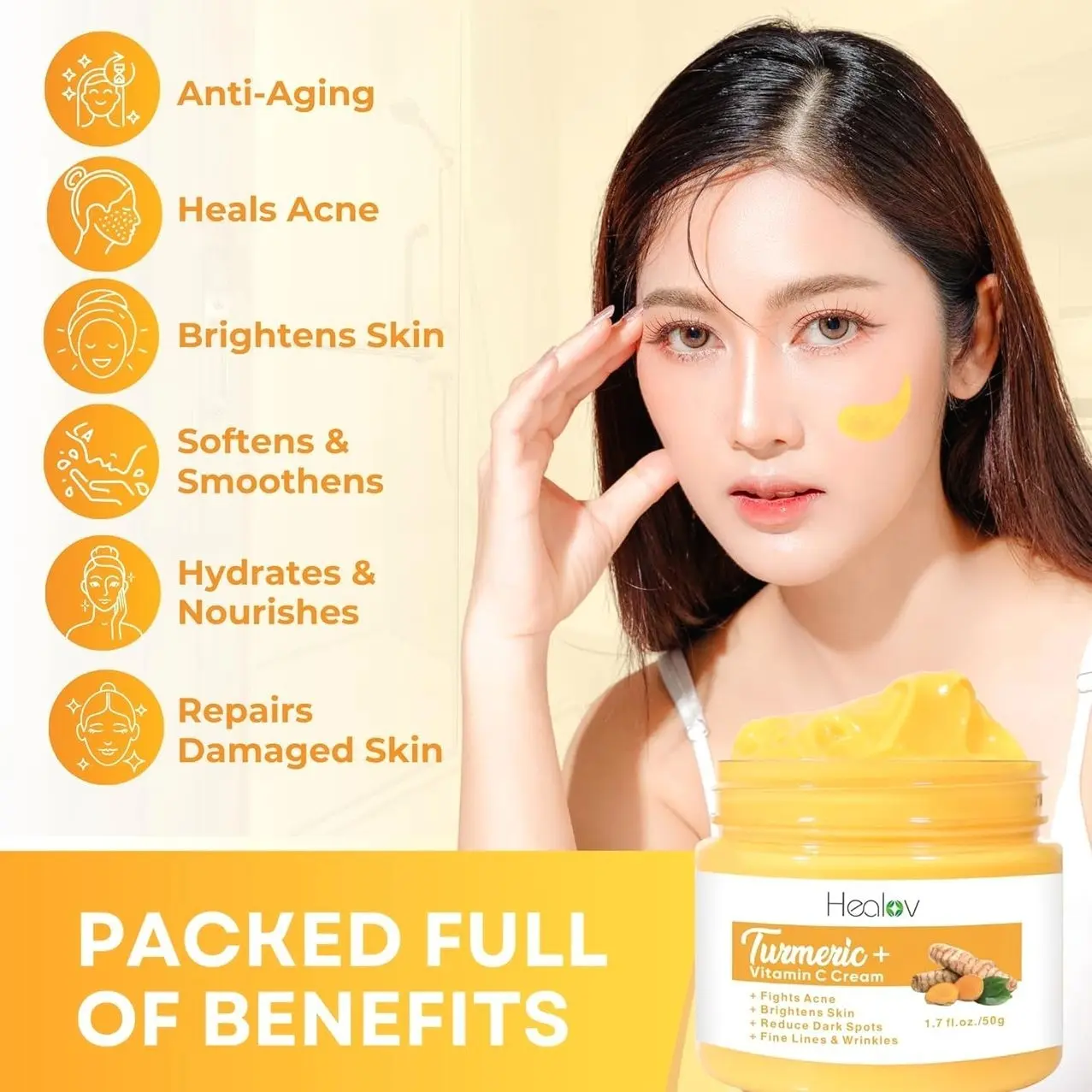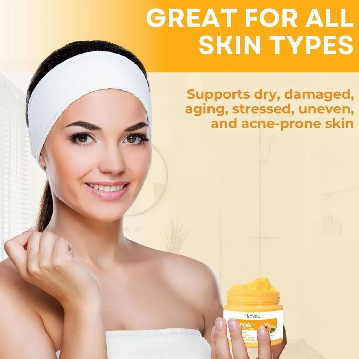 · SAFE GENTLE & EFFECTIVE SKINCARE: Turmeric skin brightening face & body cream works great for all skin types. It helps dry skin, damaged skin, aging skin, stressed skin, uneven skin, and acne-prone skin.