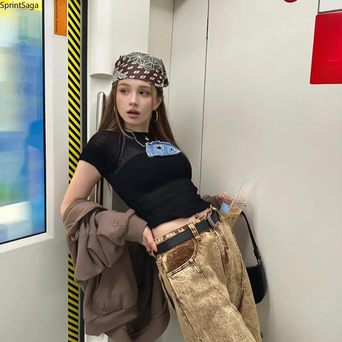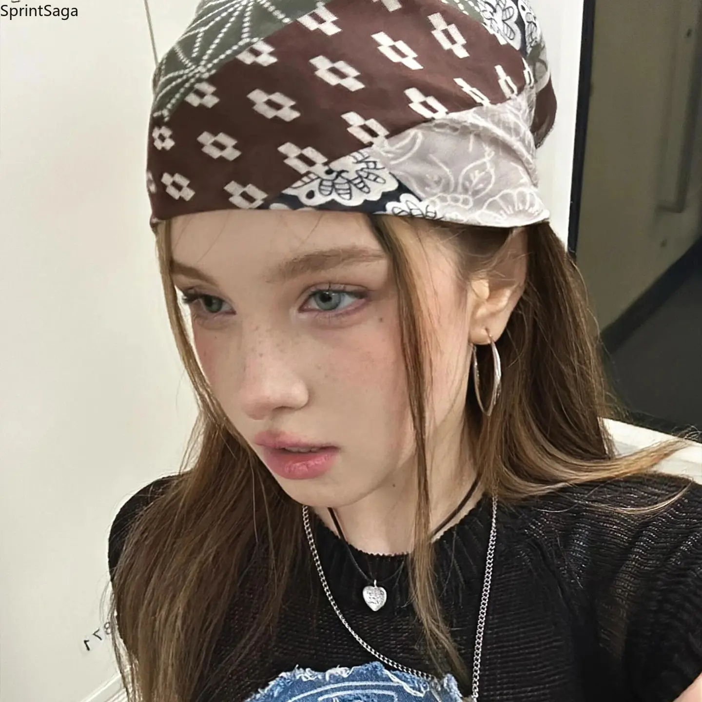 Vintage y2k millennial hottie headscarf female personality trend hip hop street dance square scarf popular accessories