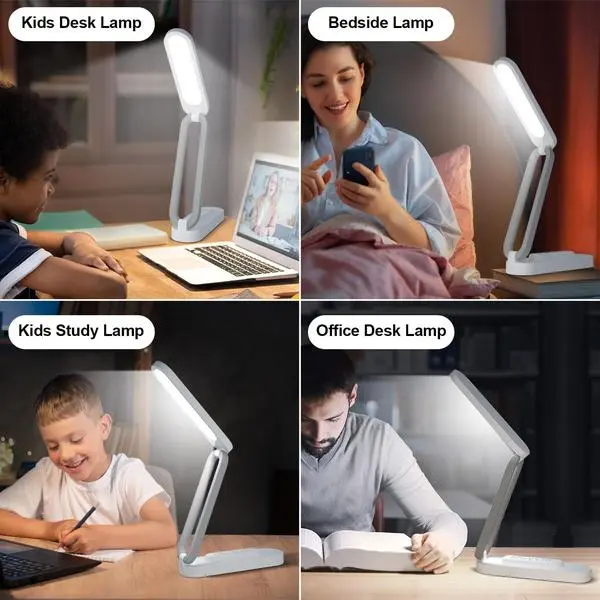 ·【SAVE SPACE, TYPE-C POWER SUPPLY AND BUTTON CONTROL】Led desk lamp can be adjusted freely in multiple angles, foldable, convenient for storage, light in body, easy to carry, used in office, library and bedroom, white simplicity.You can use the Type-C charging port to power the lamp, and through button control, you can use the button panel to control the light switch and brightness. Please note: This light requires a 5V-1A plug for power