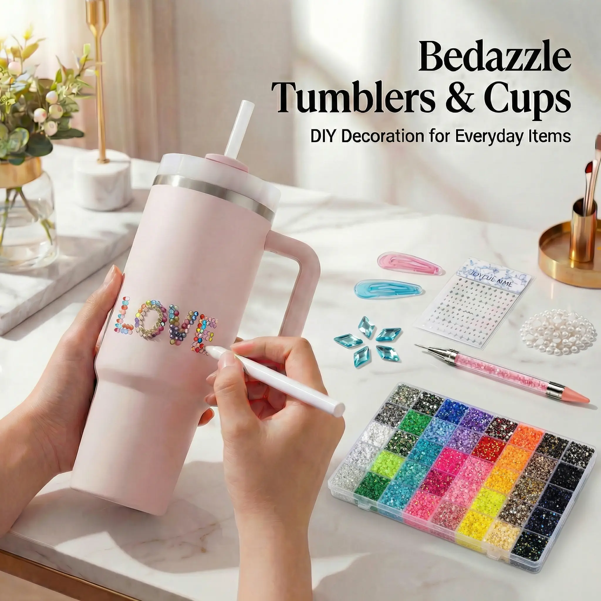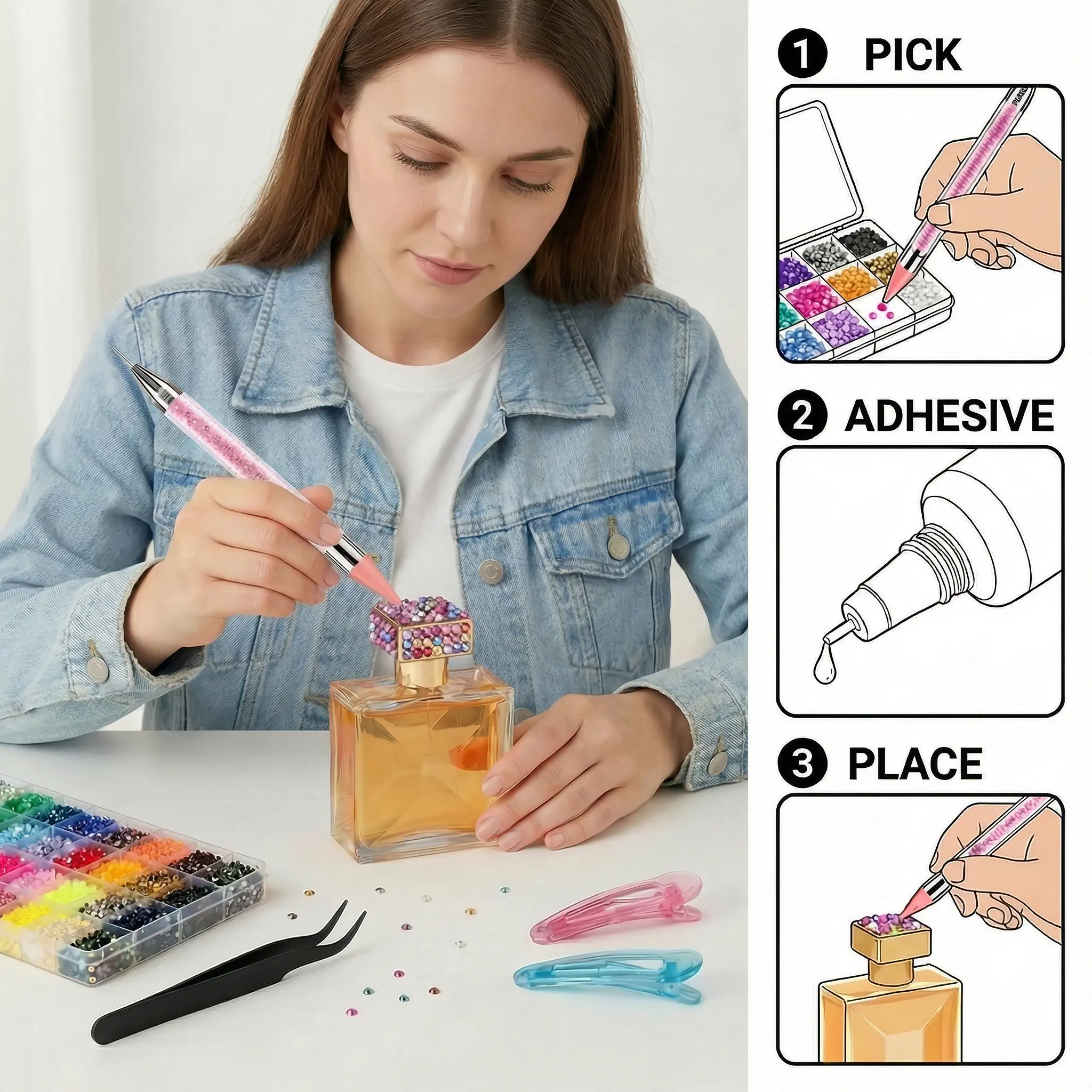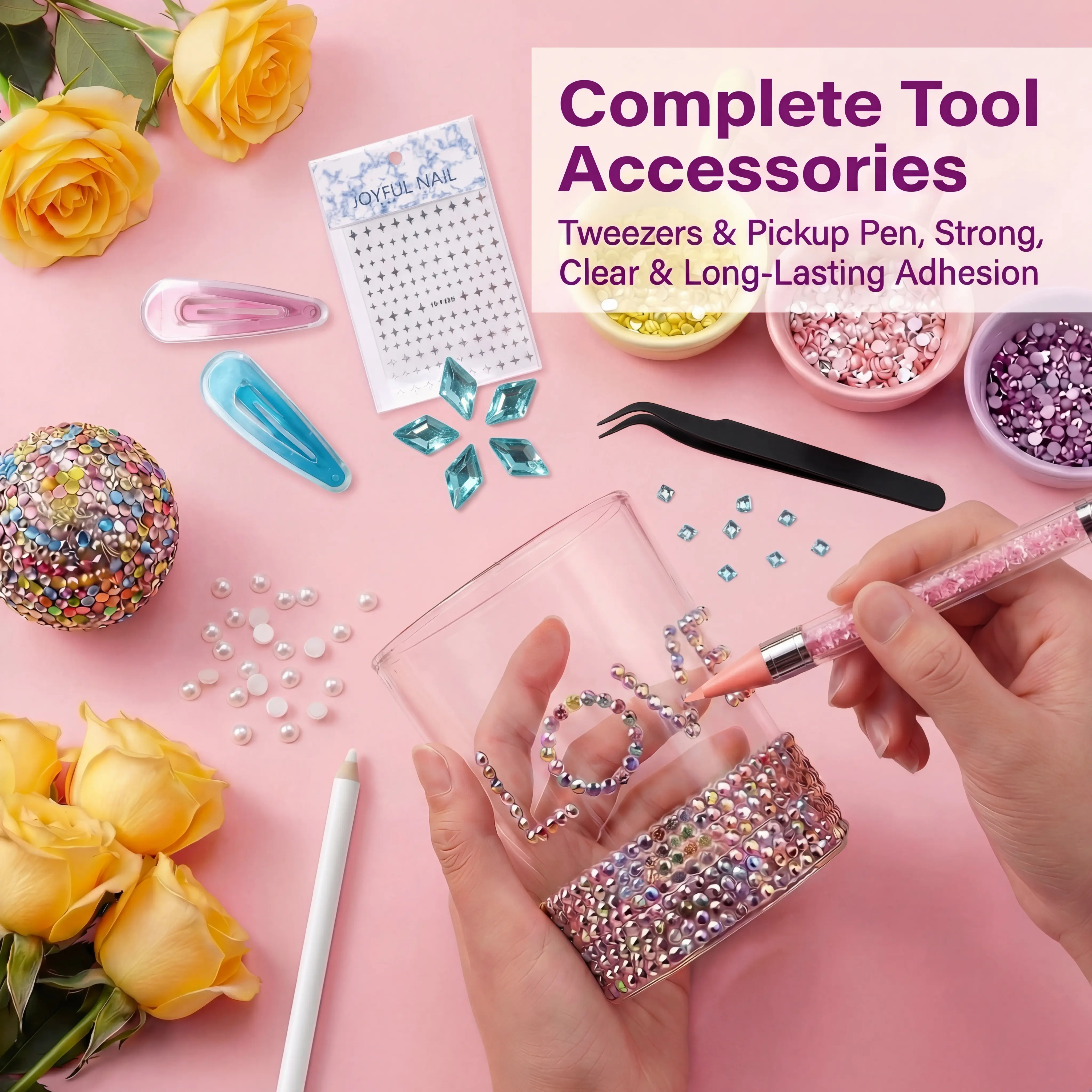 Use this kit for a variety of projects. From enhancing nail art to decorating shoes and tumblers, the possibilities are endless. The rhinestones are perfect for adding a glamorous finish to your designs.