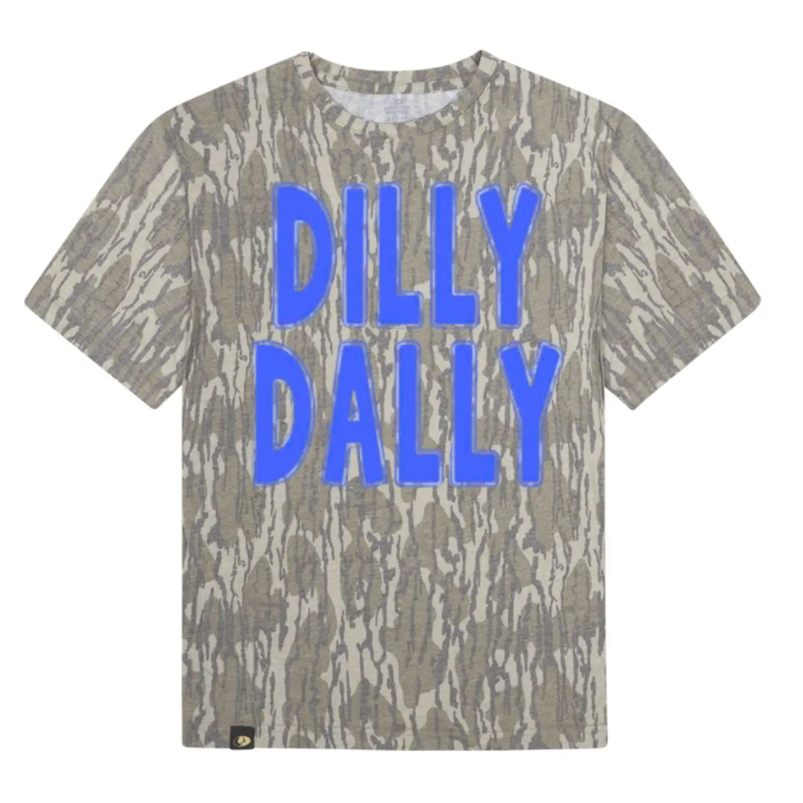 Mossy Oak DILLY DALLY Printing On Original Bottomland Camouflage Camo T-Shirt – Soft & Breathable Tee