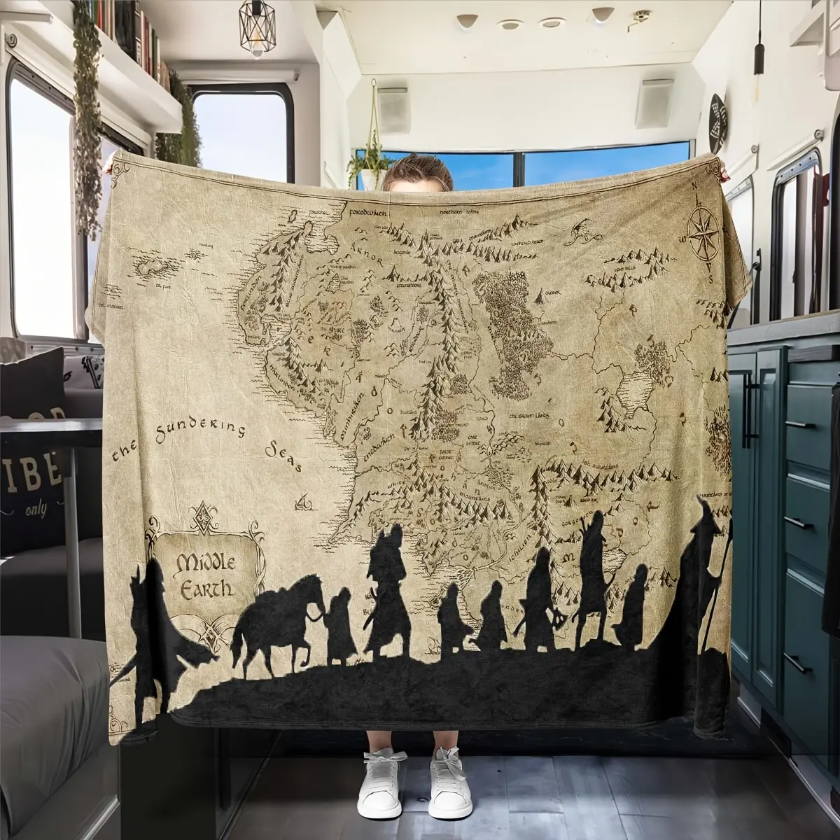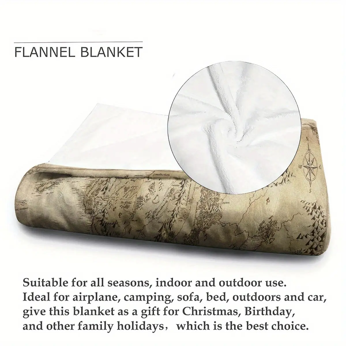 5. Vintage World Map Pattern Flannel Fleece Blanket Warm Cozy All Season Decor for Home Car Travel Design Polyester Knit Fabric Bedding Throw