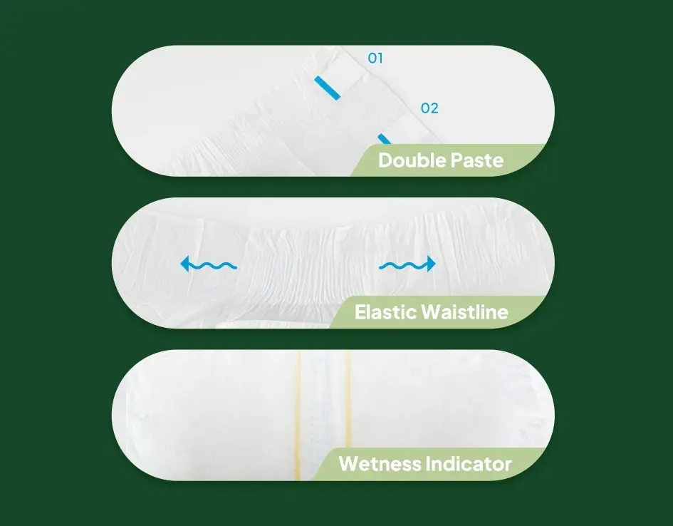 X9 adult diapers with tabs provide reliable, discreet protection for men and women managing moderate to heavy incontinence. The breathable composite back sheet keeps skin comfortable and reduces the risk of rashes and skin breakdown – a critical feature for those who wear diapers for extended periods. Our super absorbent core locks wetness away instantly and prevents leaks, while the secure-fit tabs allow you to adjust the diaper for a perfect fit every time. Built-in leak guards provide extra protection around the legs, so you can move, sit, stand, and sleep with confidence. The soft, cloth-like cover feels gentle against sensitive skin and reduces noise for discreet wear under clothing. Odor control technology neutralizes unpleasant smells, keeping you fresh and confident throughout the day. Perfect for incontinence, post-surgery recovery, limited mobility, or overnight use. Available in sizes M, L, and XL. Dermatologically tested. FDA registered.