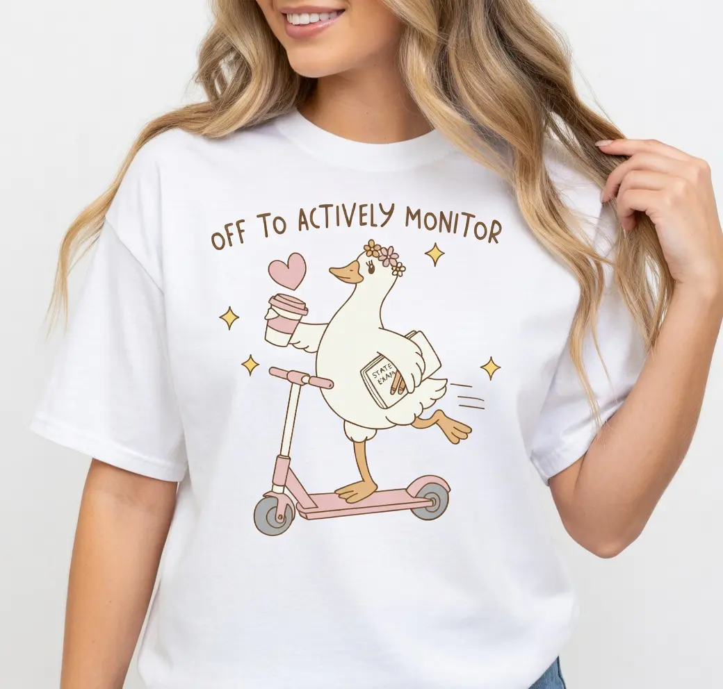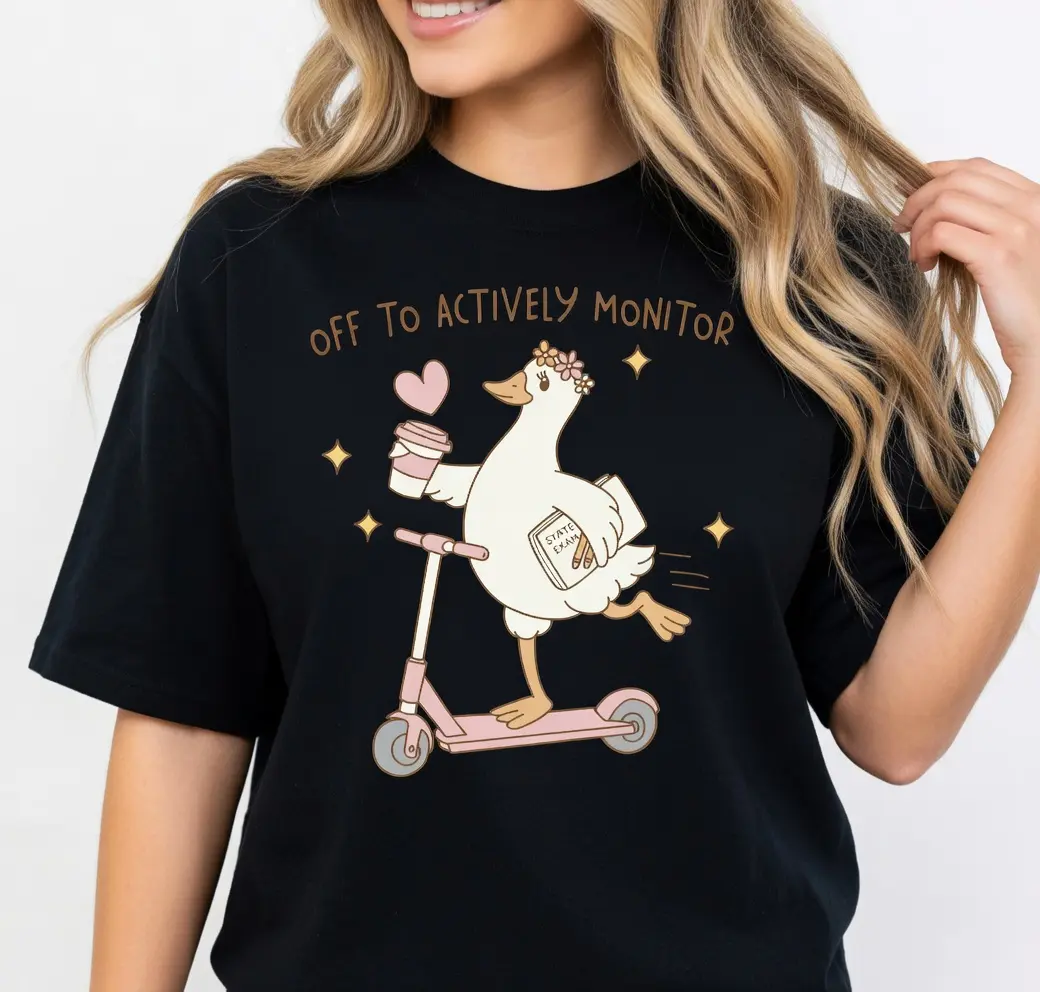State Testing Day Teacher Crew Shirt with Scooter Goose