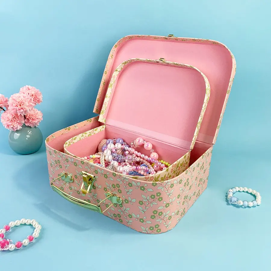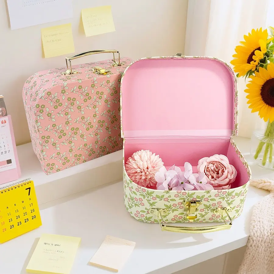 2pcs Pink Floral Suitcase Gift Box, Cardboard Decorative Storage Box, Home Storage Box with Latch and Metal Handle, Suitable for Home Decor, Household, Bedroom Storage, Valentine's Day, Christmas, Thanksgiving, Birthday, Anniversary