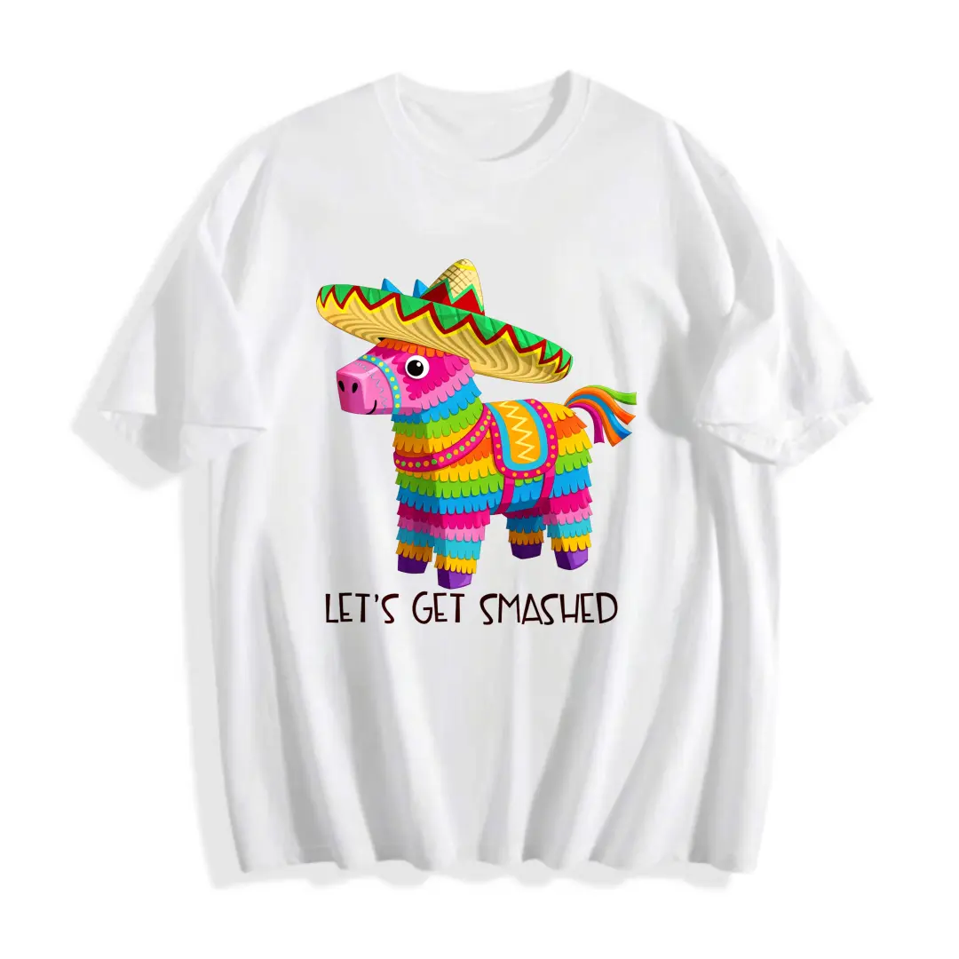 Men’s Casual Fun Graphic Tee 100% Cotton Plus Size S-5XL Colorful Piñata Sombrero Let's Get Smashed Party Season Gift For Friends lemons on fire streetwear logos on clothes topher t shirt American Short Sleeve T-shirt funny shirts men funny t shirt deals