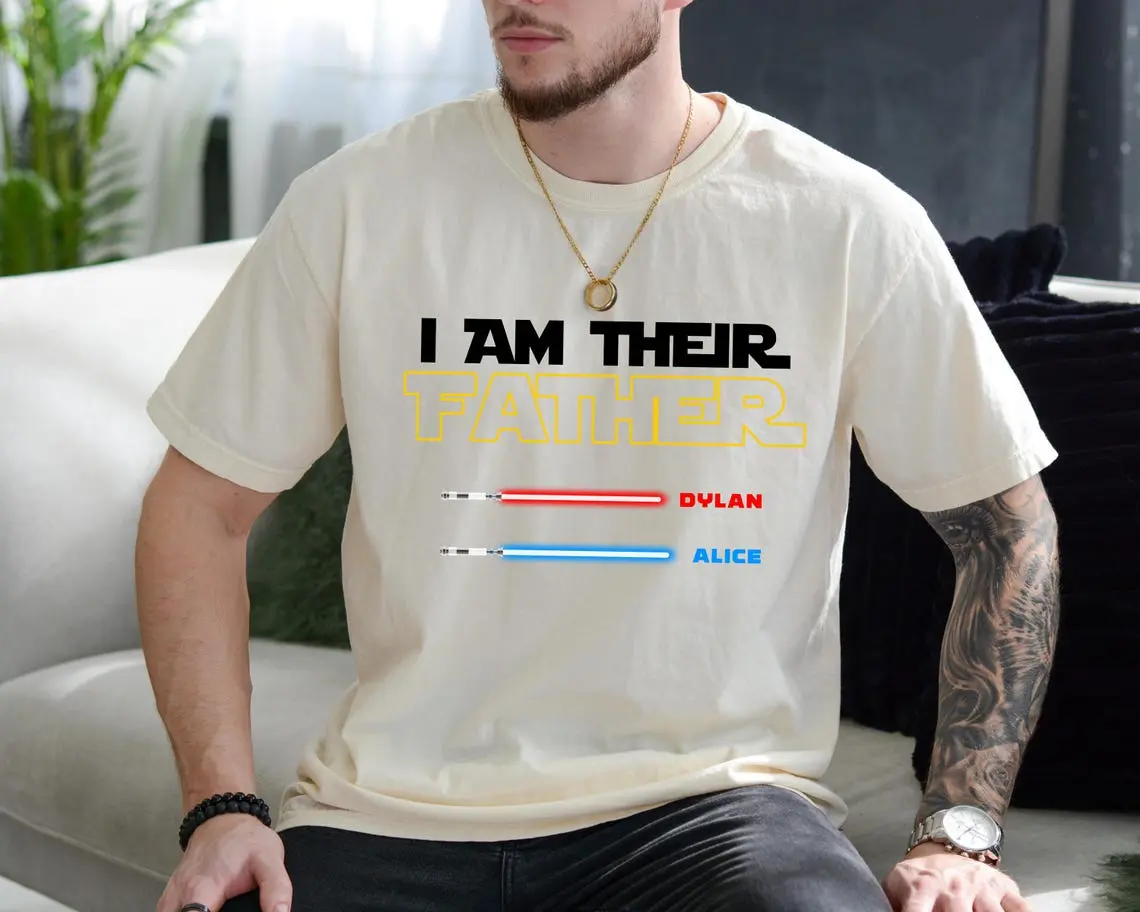 Personalized I Am Their Father Shirt, Custom Kids Name Shirt, Light Sabers For Dad Shirt, Happy Father's Day Shirt, Funny Dad Life Shirt