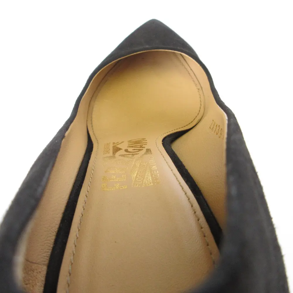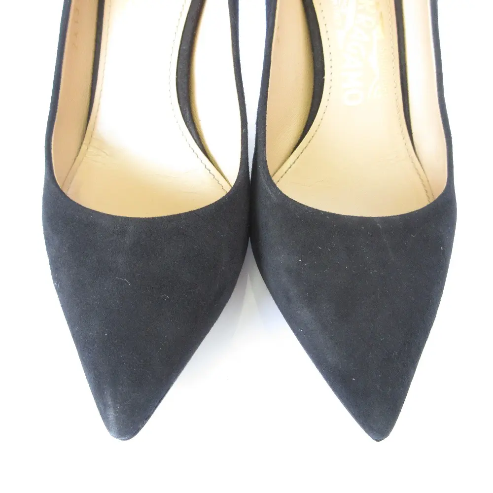 Pre-owned SALVATORE FERRAGAMO Suede Small Leather Goods Pointed Toe Pumps