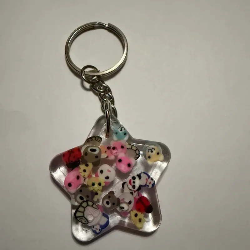 Star-shaped Keychain with Adorable Animal Inclusions - Perfect for Keychains and Accessories