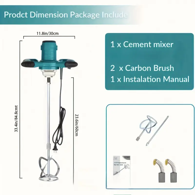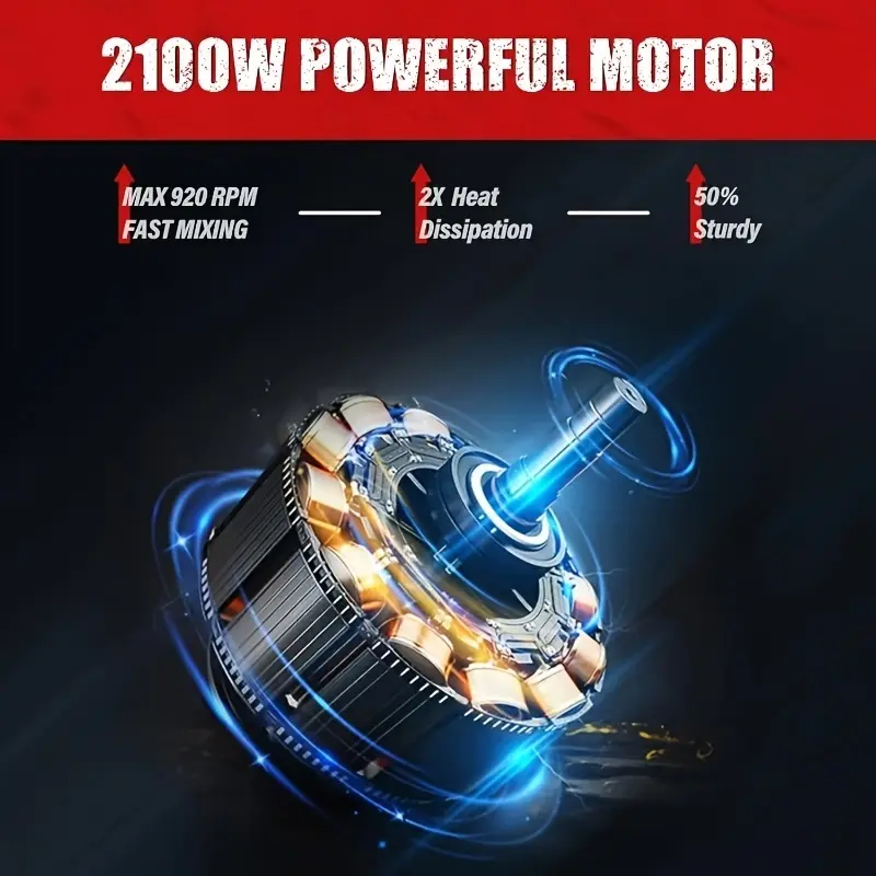 This 2100W 110V handheld mud mixer is a heavy-duty electric concrete mixer that combines powerful performance with flexible operation. It is suitable for a variety of mixing scenarios and is a practical tool in construction, decoration, and agricultural farming. It easily meets the mixing needs of various materials, is efficient and labor-saving, and is convenient and durable. It overcomes the limitations of traditional mixing tools, which are underpowered and cumbersome to operate. The handheld design combines flexibility and practicality, requires no complex installation, is easy to use, greatly improves mixing efficiency, and reduces labor costs