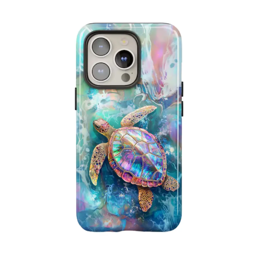 5. [HOT] Sea Turtle Stained Glass Print Phone Case, Ocean Mosaic Graphic Printed Cover, Coastal Aesthetic Cute Animal Tough Protective Case Gift