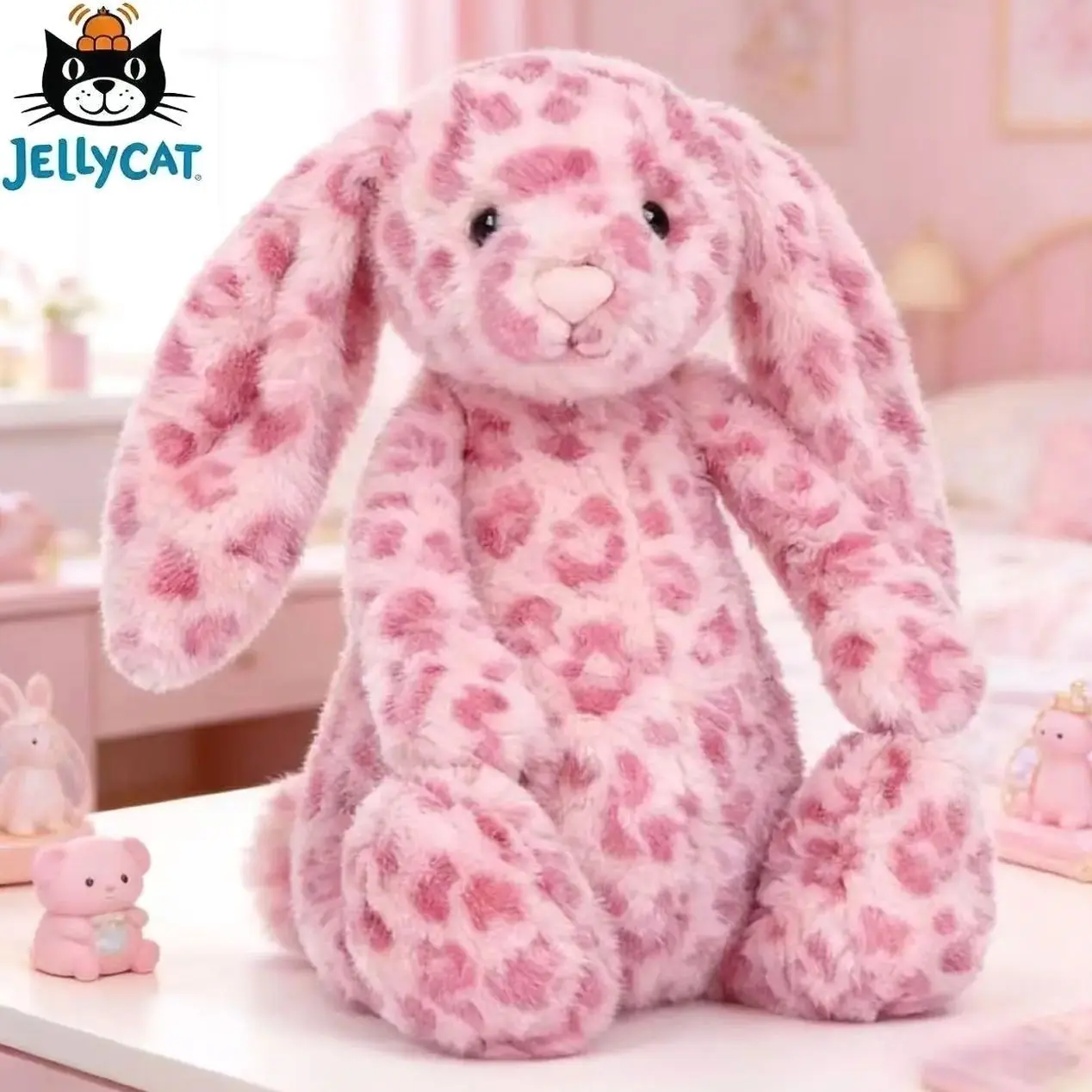 Jellycat NWT Hopscone Luxe Bunny Plush Toy Pink Leopard Print Bashful Bunny Doll