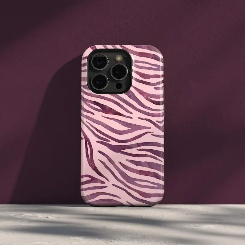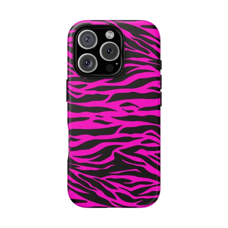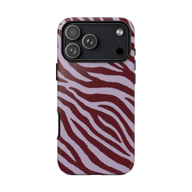 Pink Zebra Print Phone Case, Pink Tiger Print Protective, Burgundy Zebra Stripe for iphone 17 16 15 14 13 12 11
