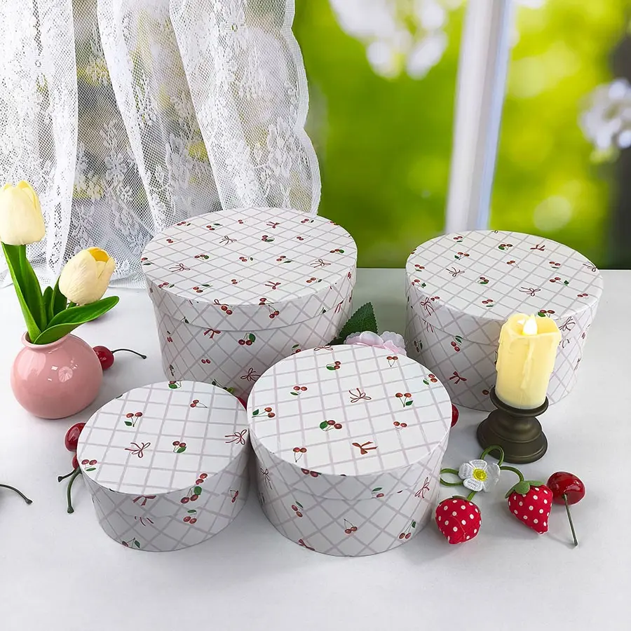 4pcs Cherry Pattern Oval Gift Box Set, Jewelry Organizer for Necklace Earrings Bracelet, Wedding Birthday Party Favor Packaging Box, Holiday Gift Box, Home Desktop Decor Display Case, Perfect for Valentine's Day Christmas Anniversary Gift Wrapping