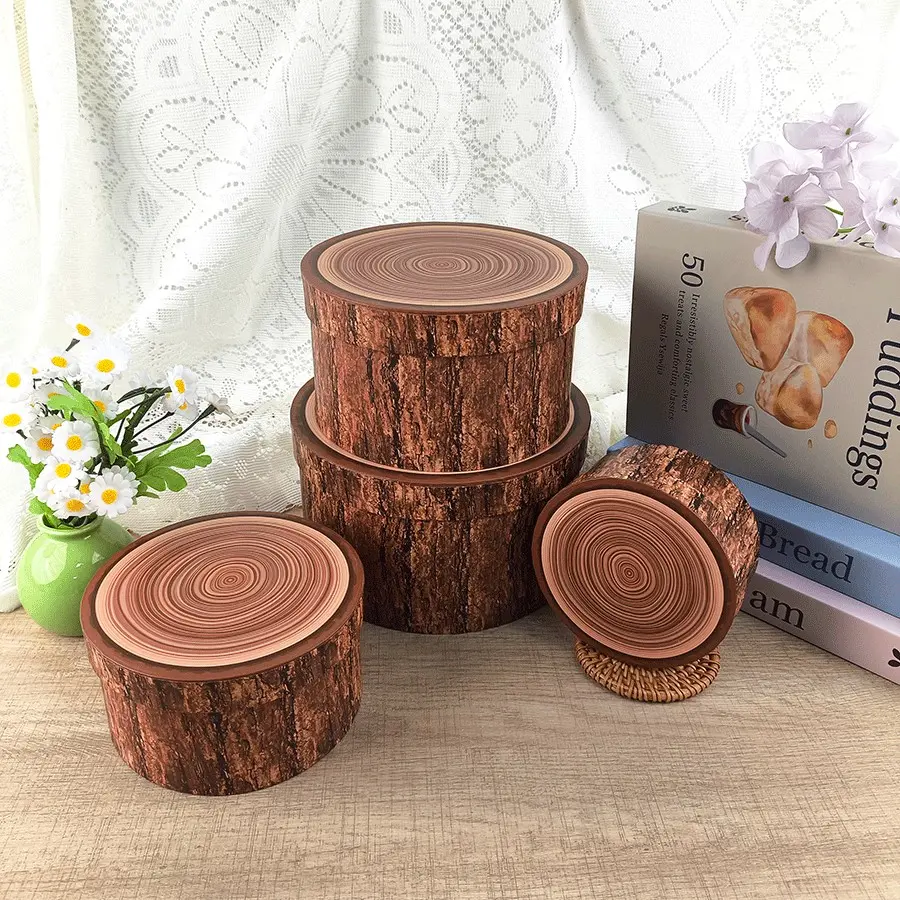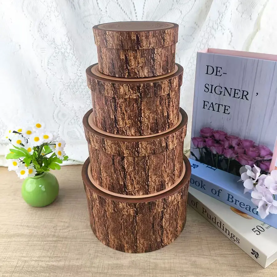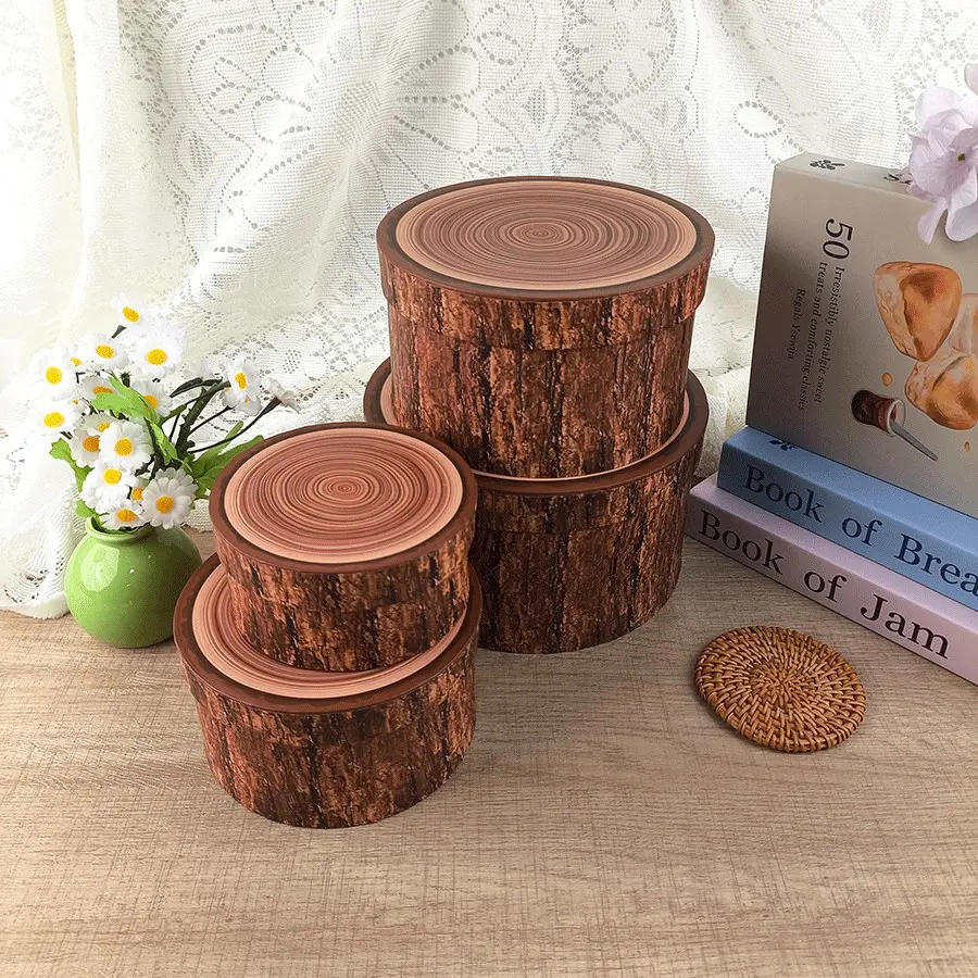 4 Piece Brown Vintage Wood Grain Round Nested Gift Box Set Oval Packaging with Lids Perfect for Birthdays,Christmas,Mother's Day ,Weddings,Valentine's Day and Graduation & Anniversaries