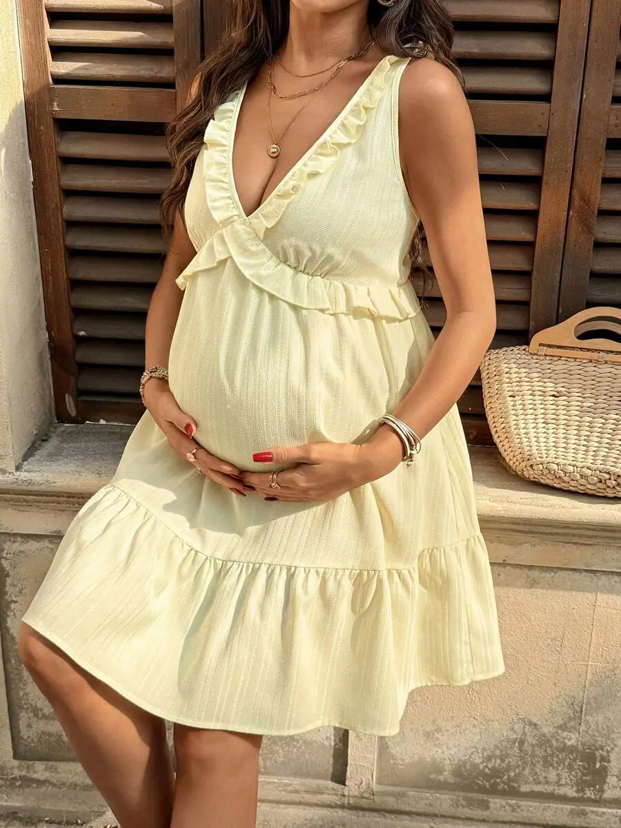 ELARA Summer Pregnancy Gown Soft Pastel Stretchy Clothes Expecting Mothers