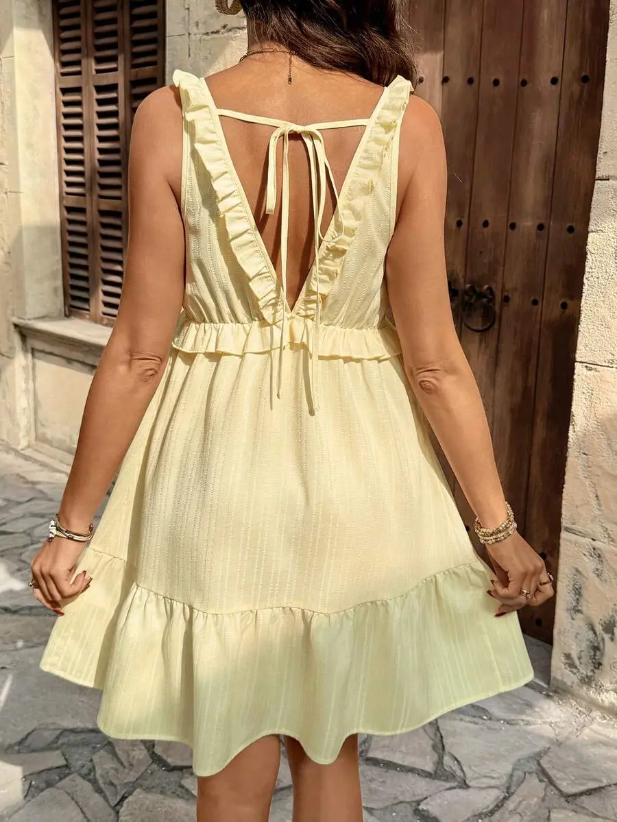 ANRABESS Womens Summer Casual Sleeveless Square Neck Smocked Ruffle Backless Boho Mini Dress 2026 Sundress Beach Vacation Outfits