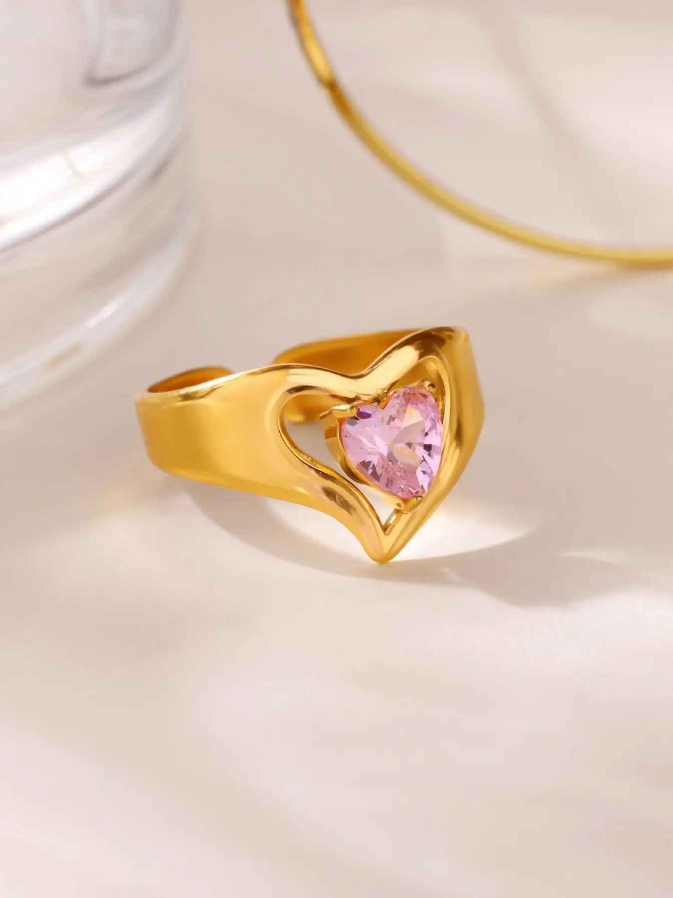 Luxurious Zircon Heart Ring for Women, Stainless Steel Wedding Ring, Fashionable Waterproof Jewelry, Perfect Gift for All Occasions